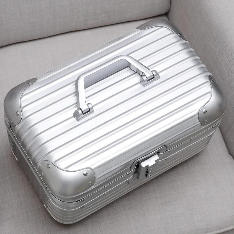 大容量アルミマグネシウム合金化粧箱ツールチェスト 14 インチ美容ケース荷物ボックスパスワード刺繍ボックス - TopDealBox
