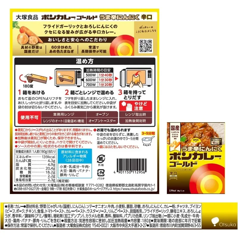 ボンカレー オツカ食品 ゴールドスパイシーガーリック スパイシー 180g、国内発送の必需品、使いやすい電子レンジ調理 - TopDealBox