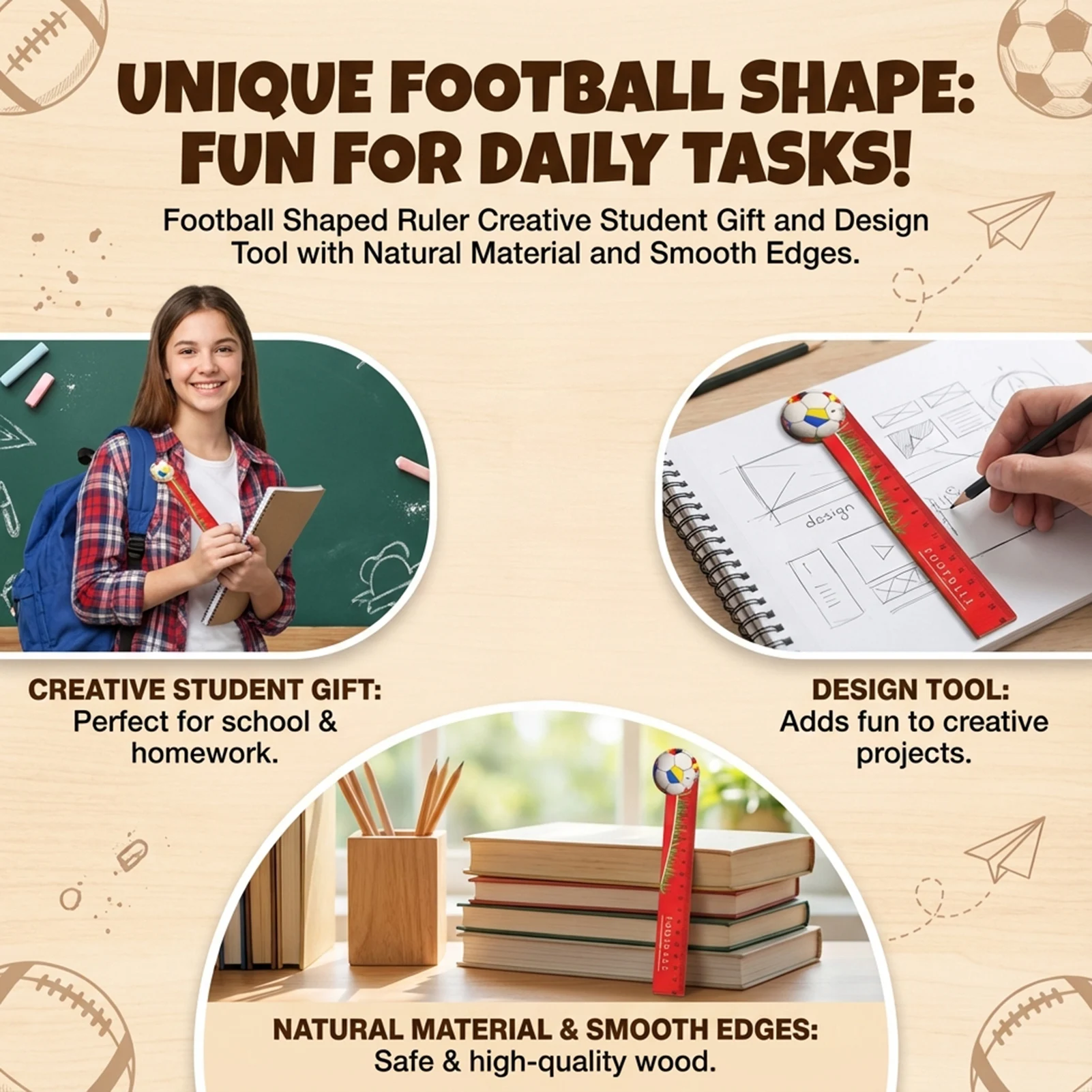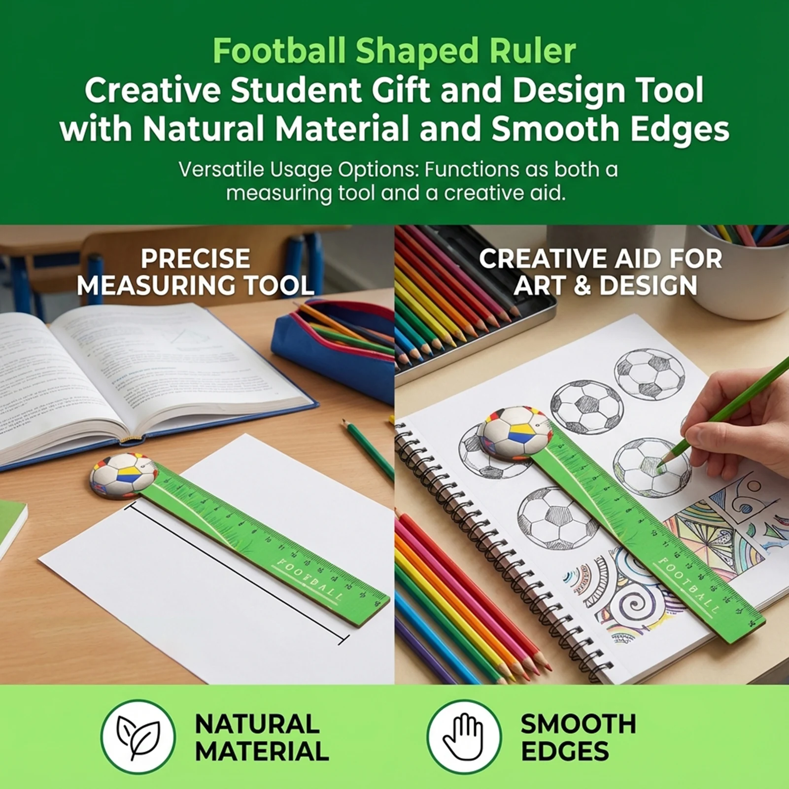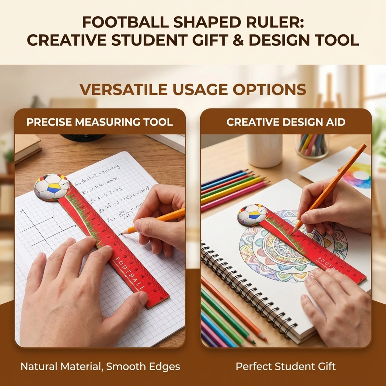 木製サッカー型定規 18cm クリエイティブ学生賞 天然木製図面ツール 学校の賞品や贈り物に - TopDealBox