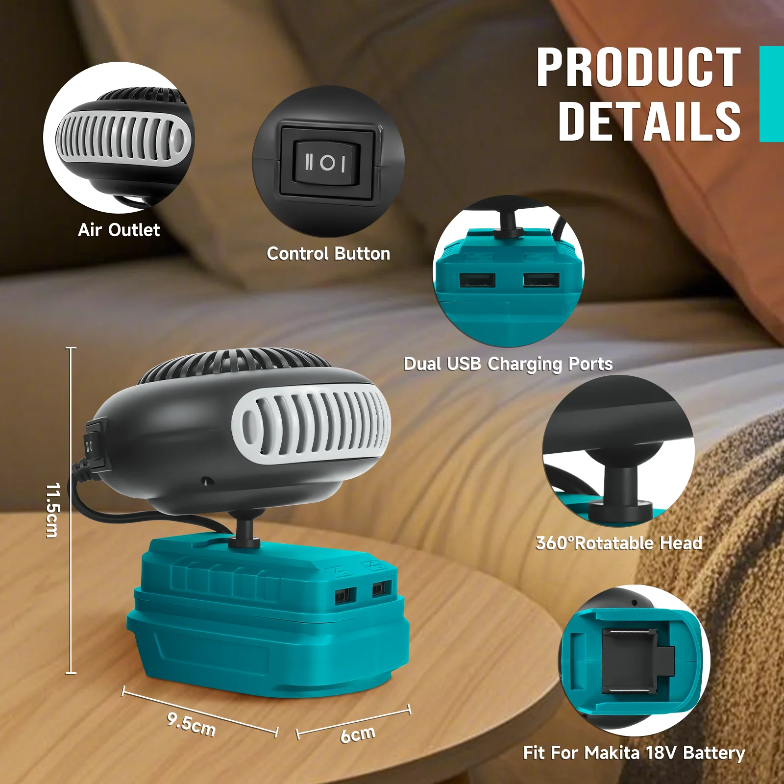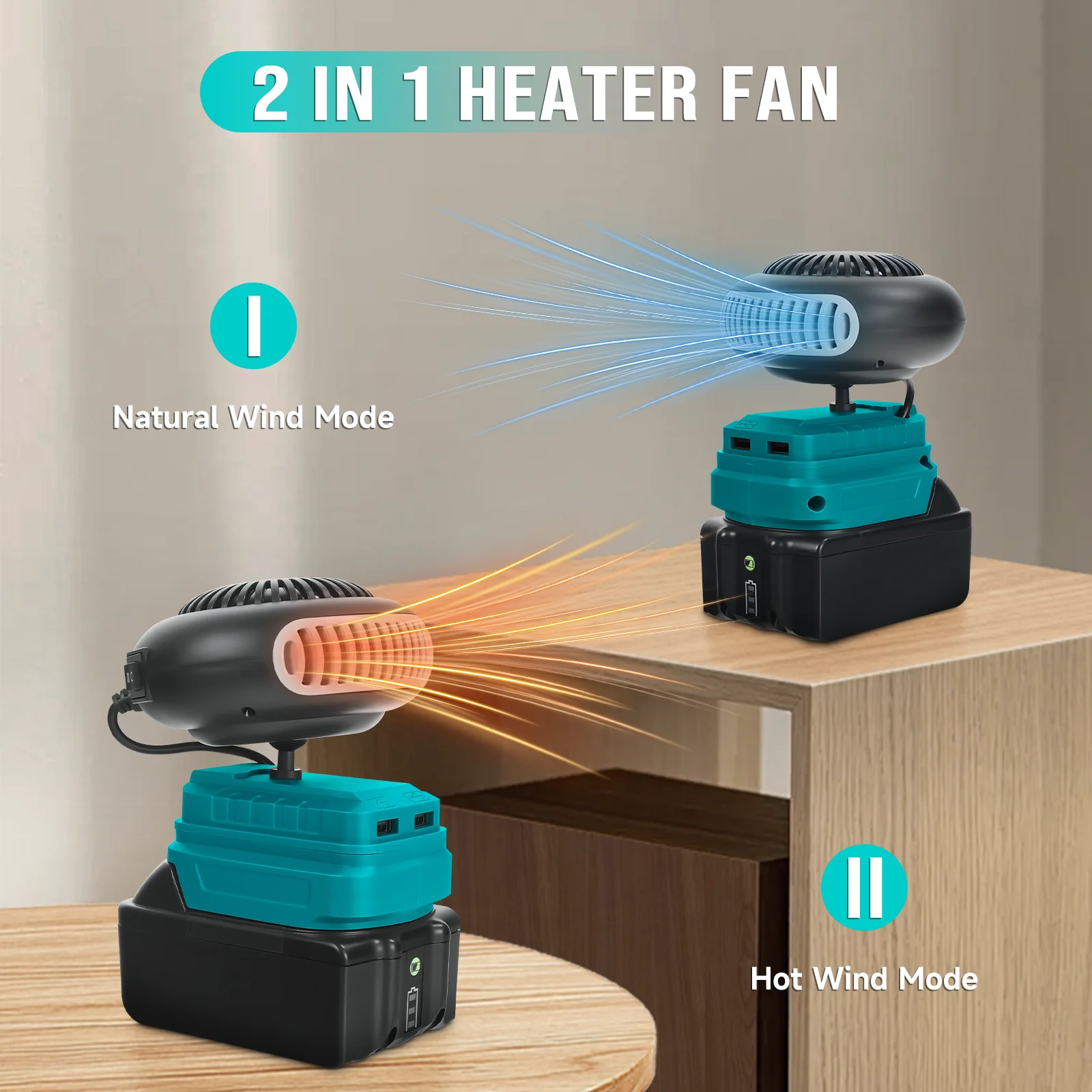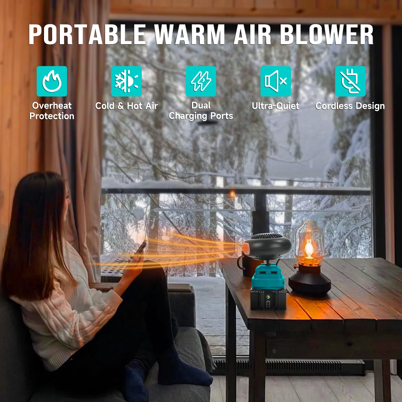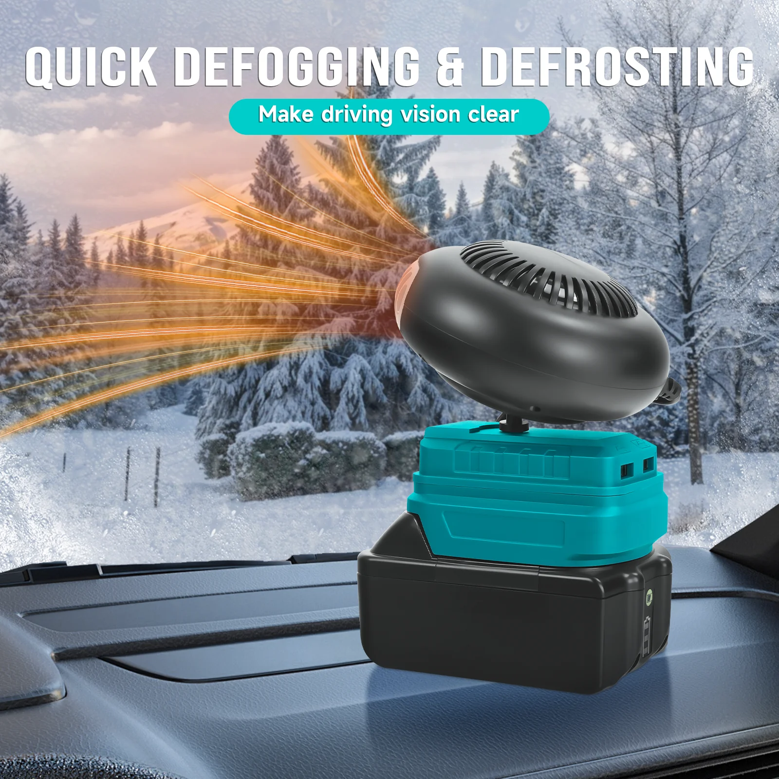 ポータブル温風送風機カーヒーターコードレスカーデフロスターフロントガラスヒーター高速加熱&冷却ファンマキタ18Vバッテリー用 - TopDealBox