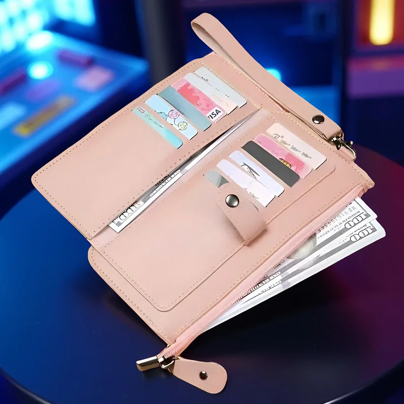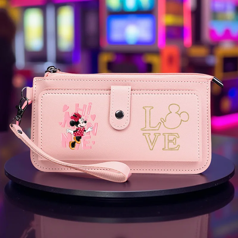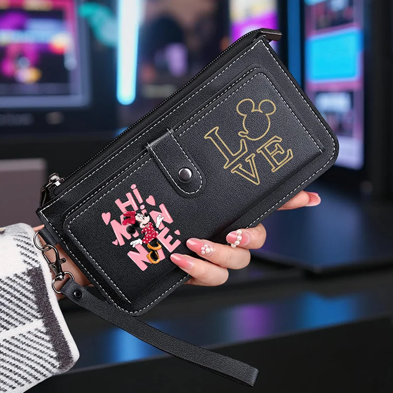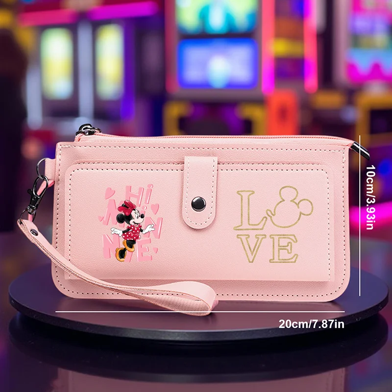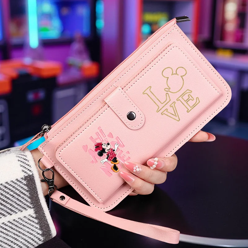 1Pc ミニー長財布、リストストラップ付き、カードスロット、ジッパー開閉、コインポケット、漫画プリントデザイン、日常使用、旅行、ショッピングに最適 - TopDealBox