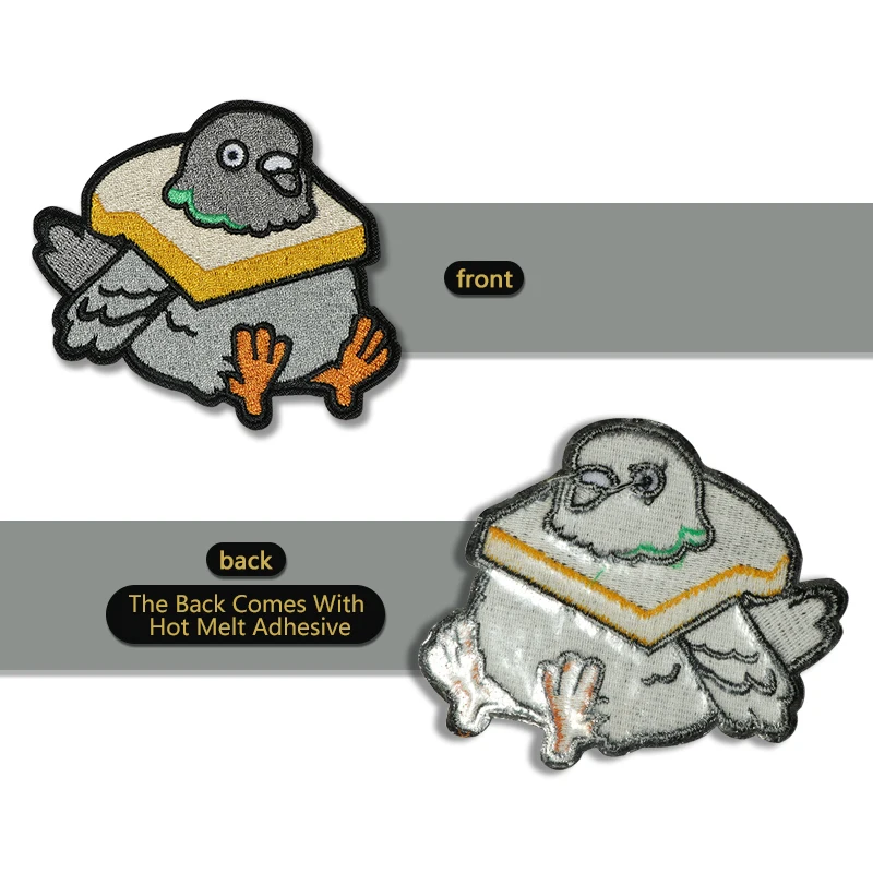1PC 鳩トースト刺繍パッチアイアンで縫う衣料用パッチキャップバッグジャケット DIY ギフトユーモアバッジとホット接着剤 - TopDealBox