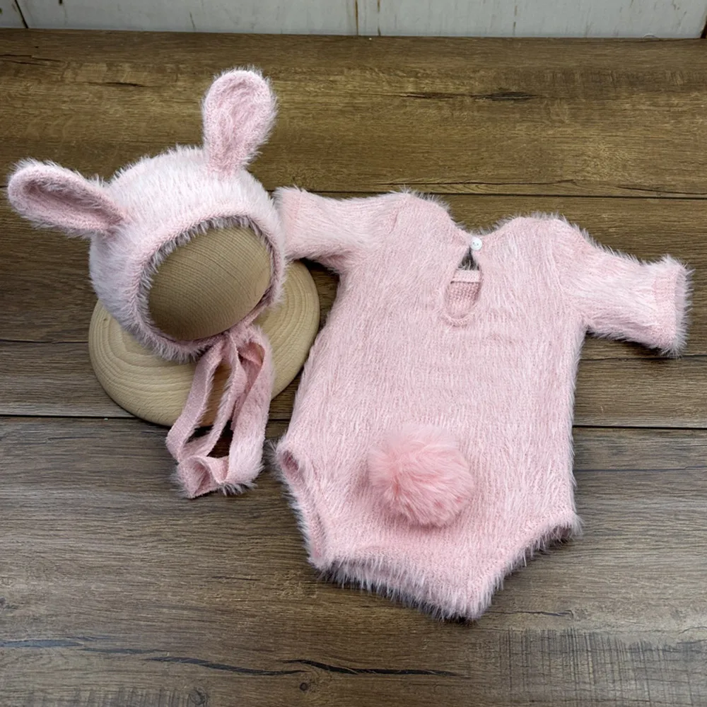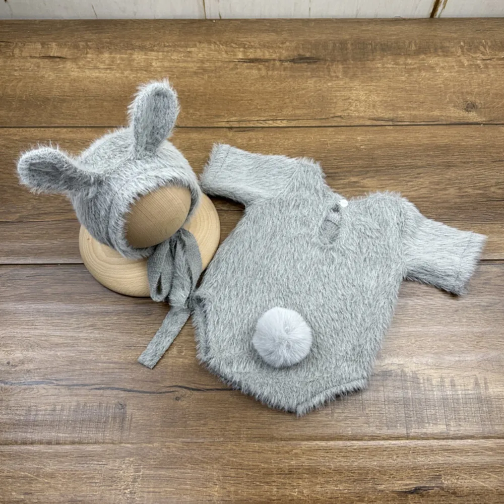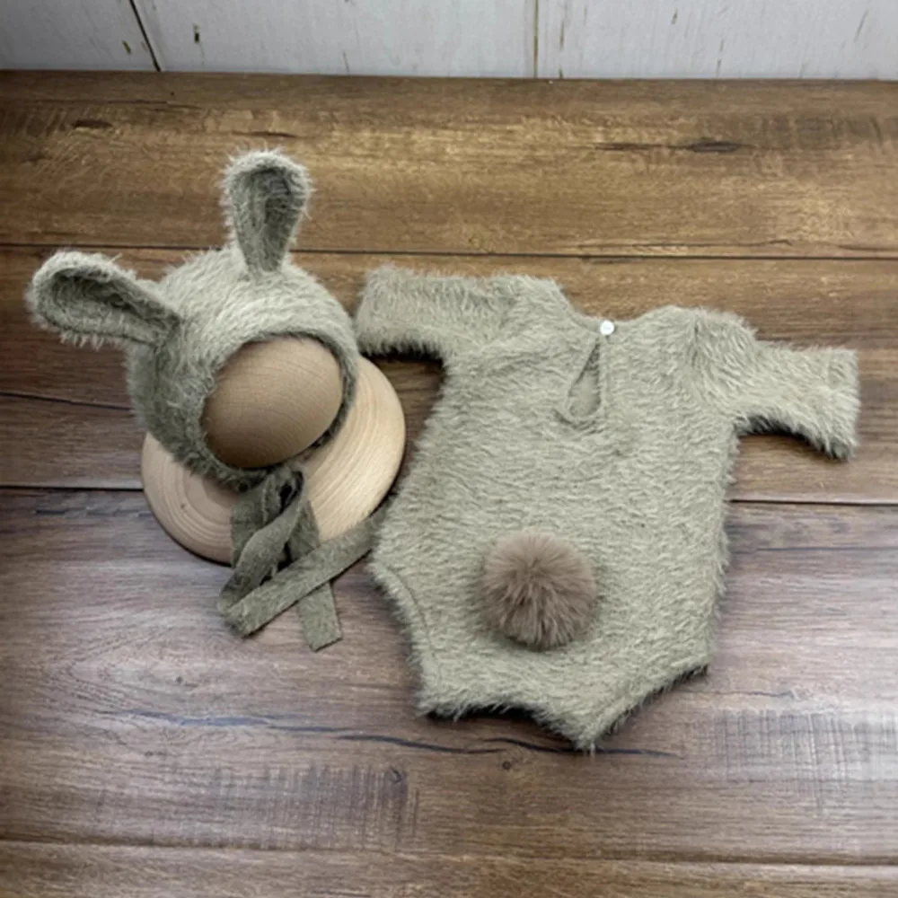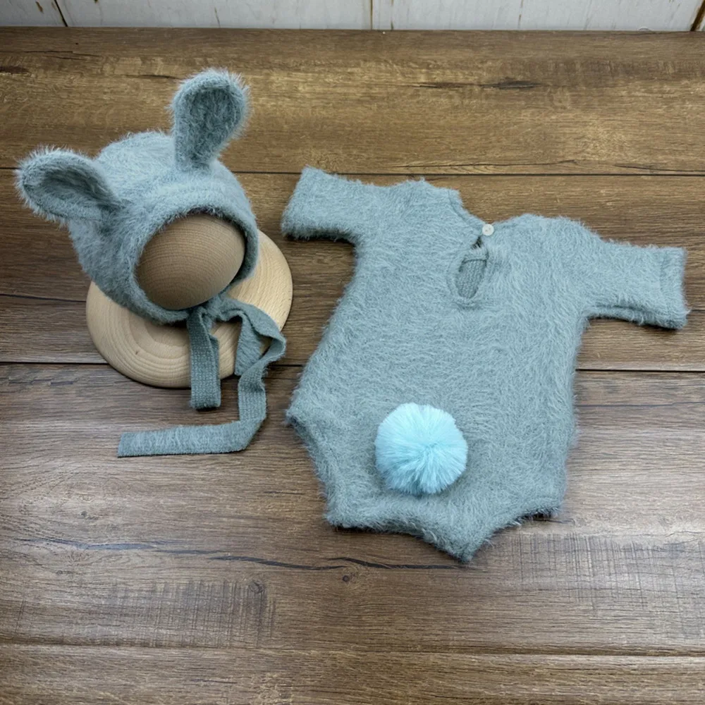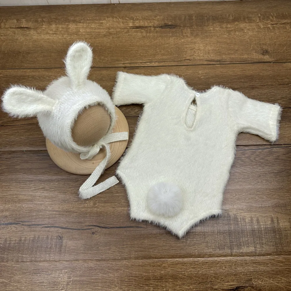 ❤️ 新生児の写真撮影服かわいいニット帽子 + ジャンプスーツ 2 ピース/セットスタジオベビー写真の小道具アクセサリー幼児撮影ウサギの服 - TopDealBox