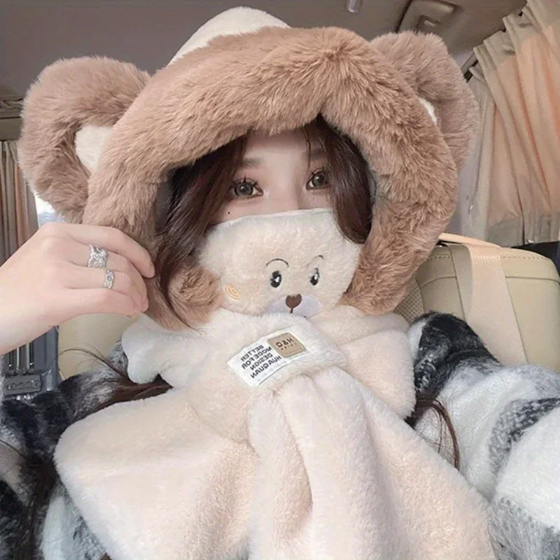 2 個グローブセットかわいいクマの帽子スカーフ + マスク 2 個セット帽子女性のための冬のイヤーマフレイフェン帽子ぬいぐるみサイクリング暖かいスキー帽子