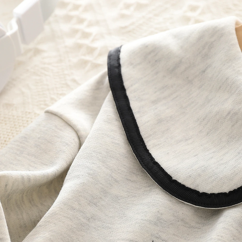 ユーモアクマ女の子の春と秋の韓国ファッションベビードールネック長袖パーカー + パンツ 2 点セットカジュアル衣装 3-7Y - TopDealBox