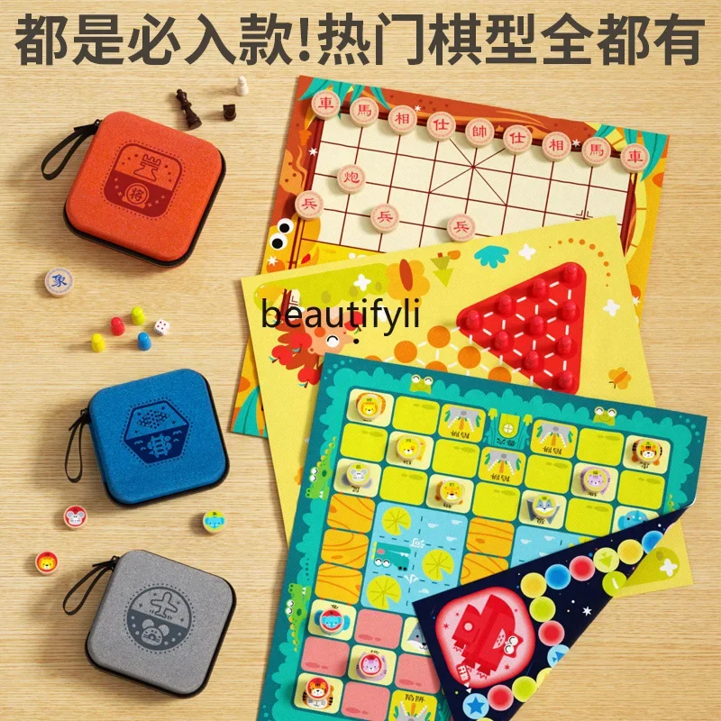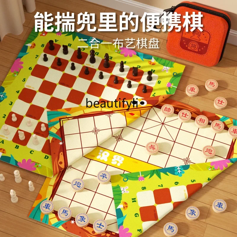 子供のためのポータブル無垢材チェスピース、ミニオークのチェス盤、小学校、2 in 1 - TopDealBox