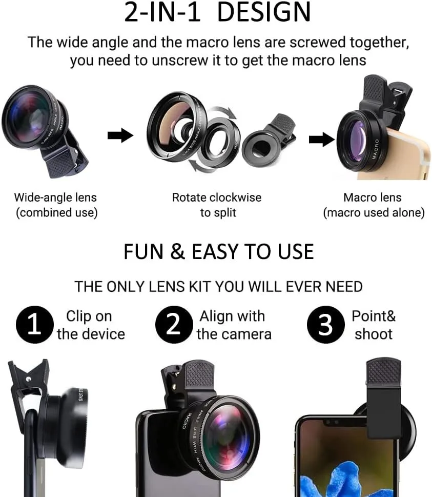 ♡Quick view2in1レンズユニバーサルクリップ37mm携帯電話レンズプロフェッショナル0.45倍49uv超広角+マクロHDレンズiPhone/Android対応295 JPYHot★★★★★★4.9