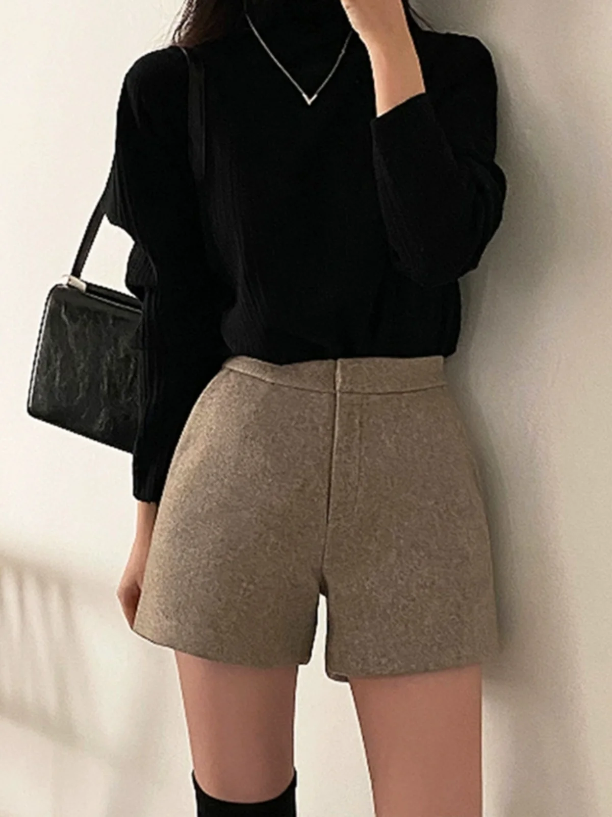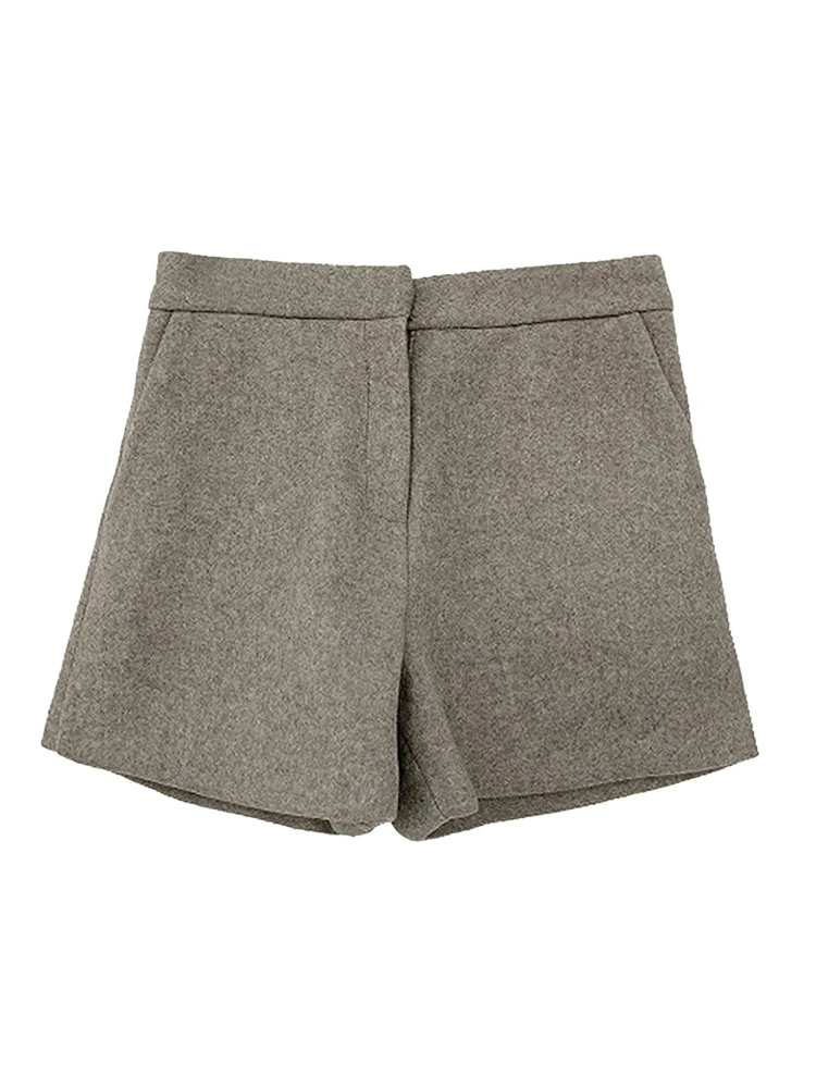 グレーハイウエスト肥厚ウールショートパンツ女性の冬のアウターカジュアルワイドレッグブーツパンツ新 2023 ファッション多用途 - TopDealBox