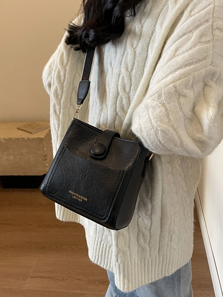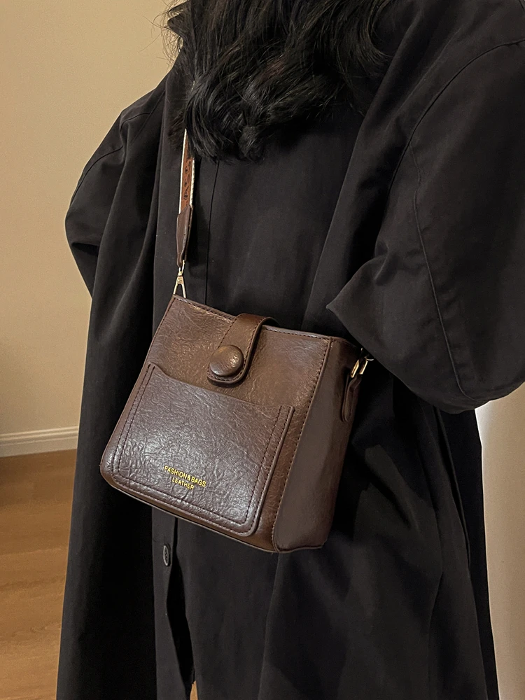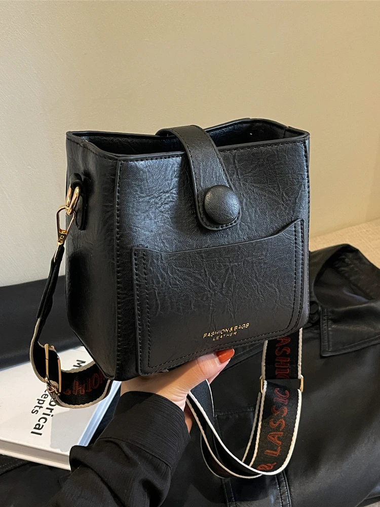 ファッショナブルなカジュアルバケットバッグストラップレイヤードデザイン 2023 新スタイルの女性のクロスボディバッグソフト PU レザージッパー開閉 - TopDealBox
