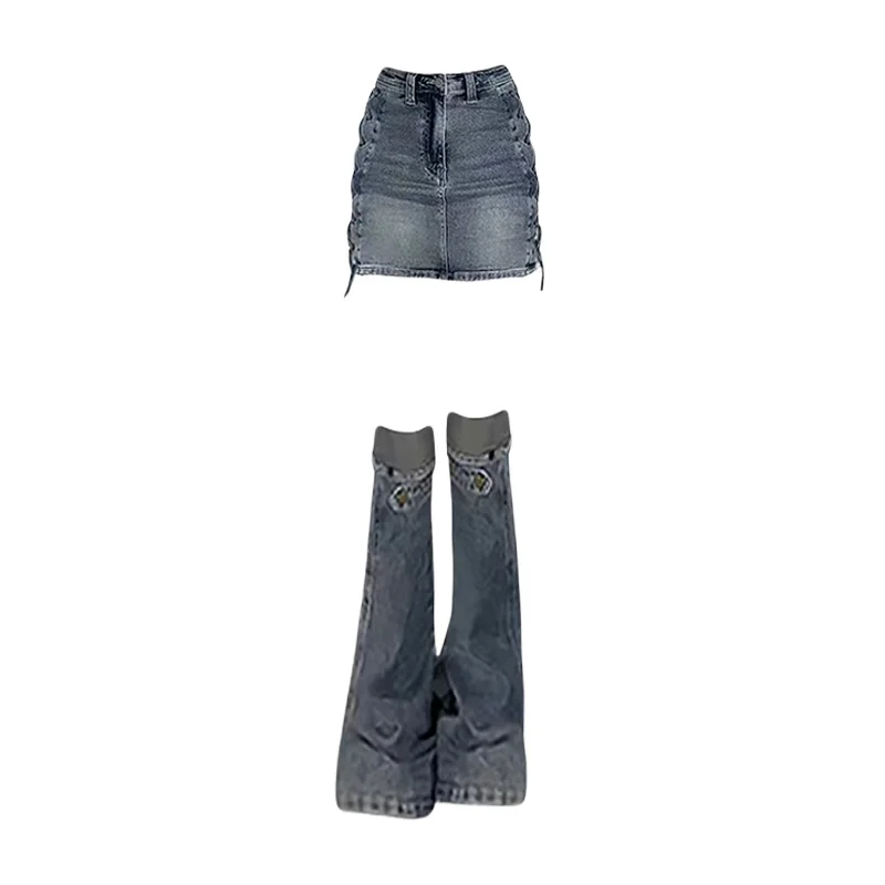 夏 2024 レトロホットガールデニムミニスカート女性の + 脚カバー巾着デザインハイウエストショートスカート女性のファッション - TopDealBox