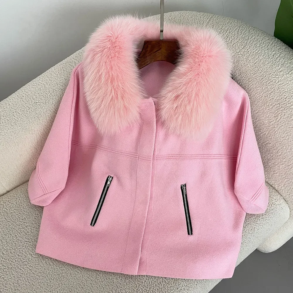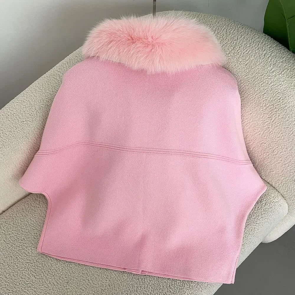 女性用天然キツネの毛皮の襟付きニットセーター,人気のブラジルのジャケット,短い毛皮のジャケット,秋冬,送料無料,2024 - TopDealBox