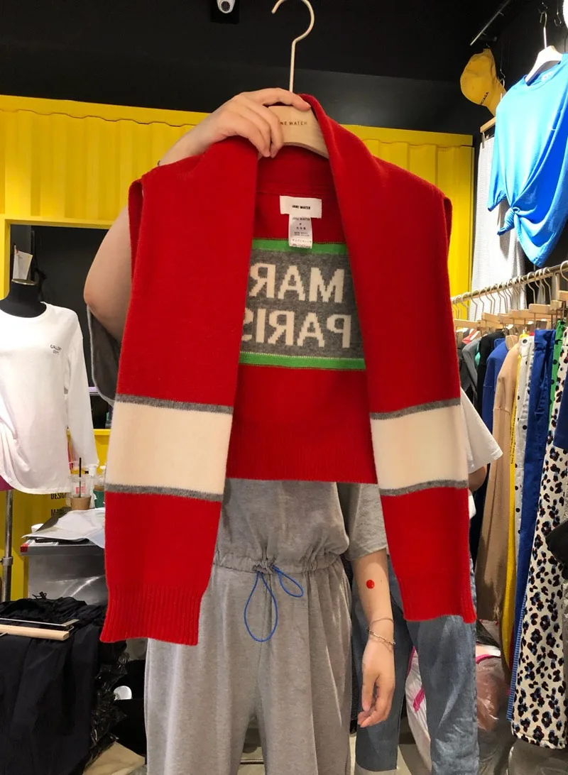 ファッショナブルなニットカラーブロックスカーフショルダーラップ女性の上着甘いトップトレンディな綿生地レギュラー丈春 2024 - TopDealBox