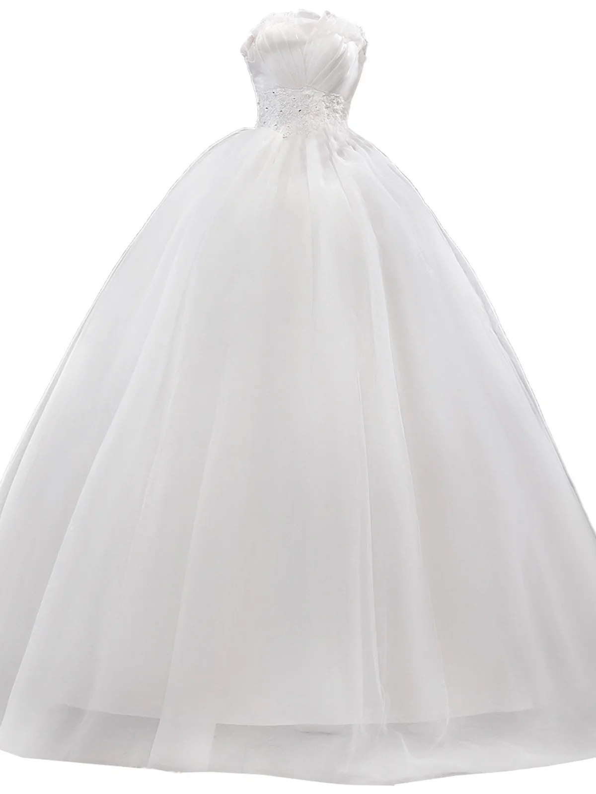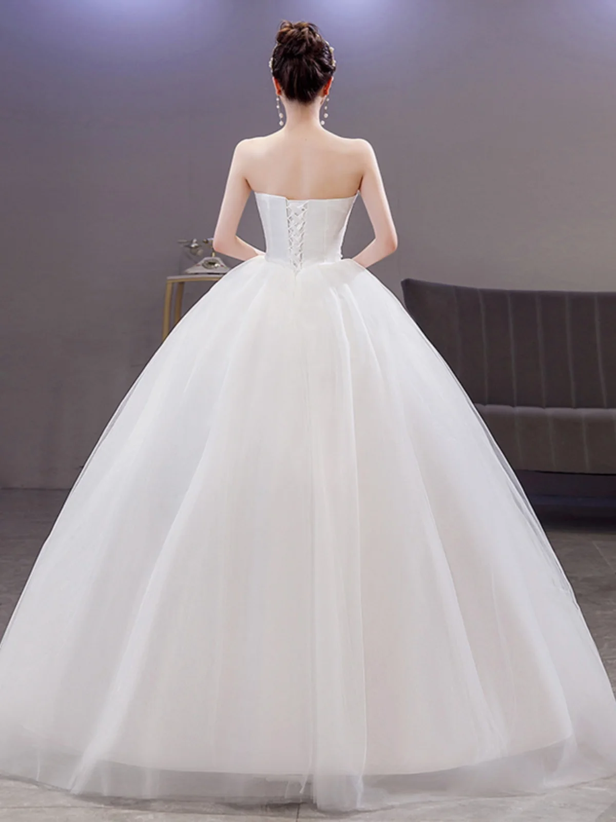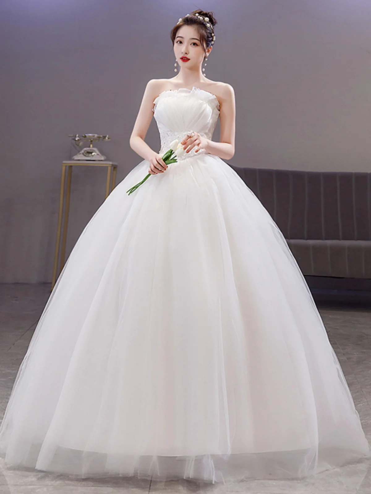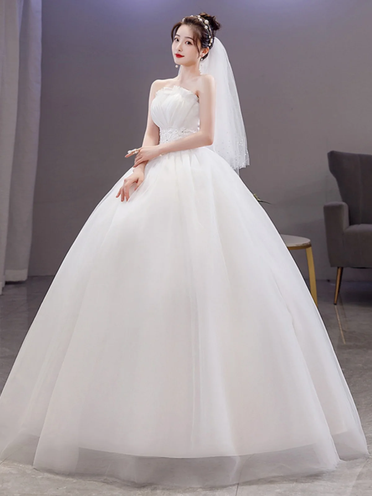 エレガントなシンプルなブライダルドレスサテントラベル写真撮影女性の新 2024 ウエストシンチ痩身ホワイトストラップレスのウェディングドレス - TopDealBox