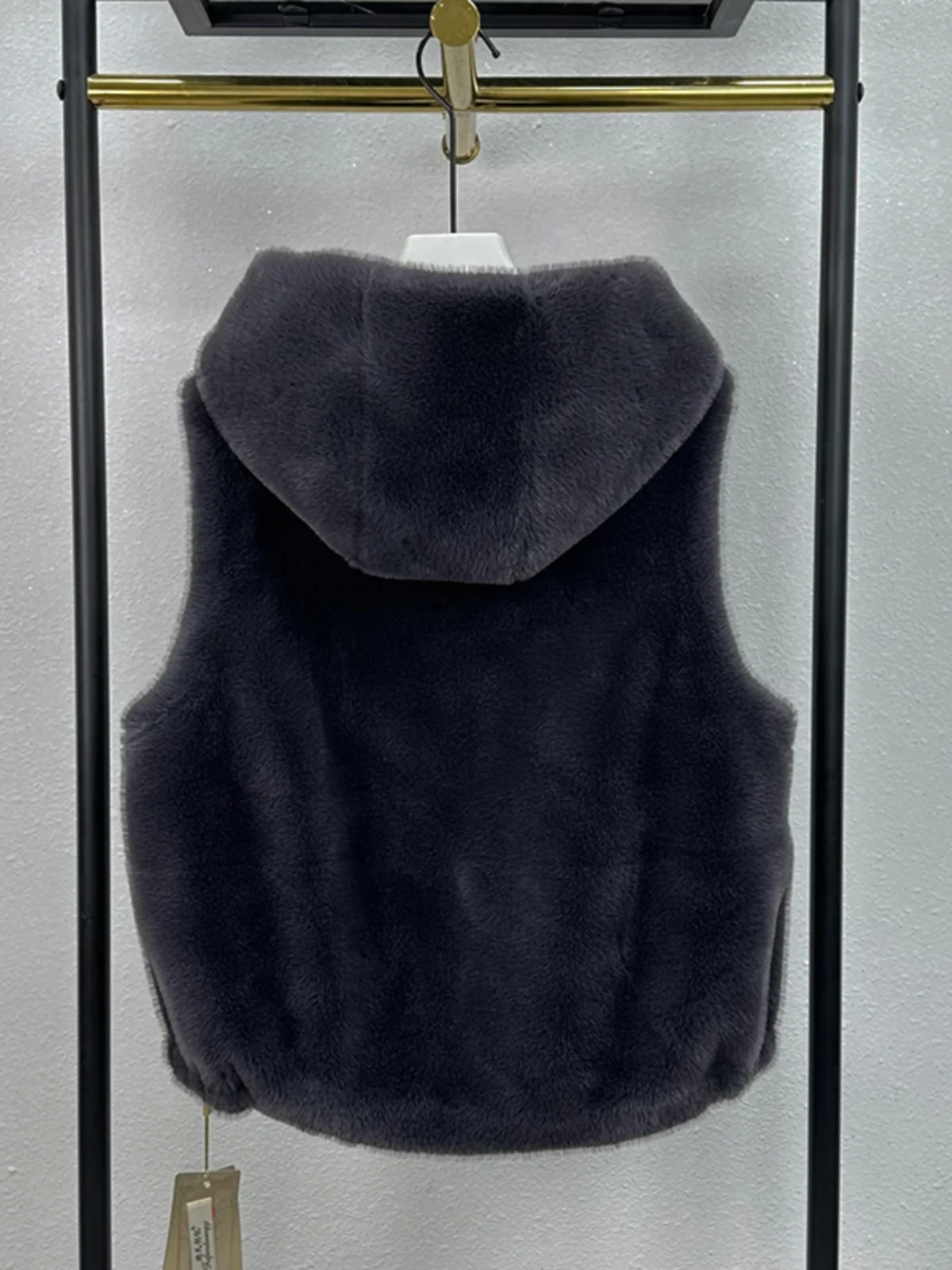 ハイエンドショート肥厚女性の毛皮のベスト 2024 冬の新帽子統合髪動物ベロアジャケットファッショナブルなストレートカット - TopDealBox