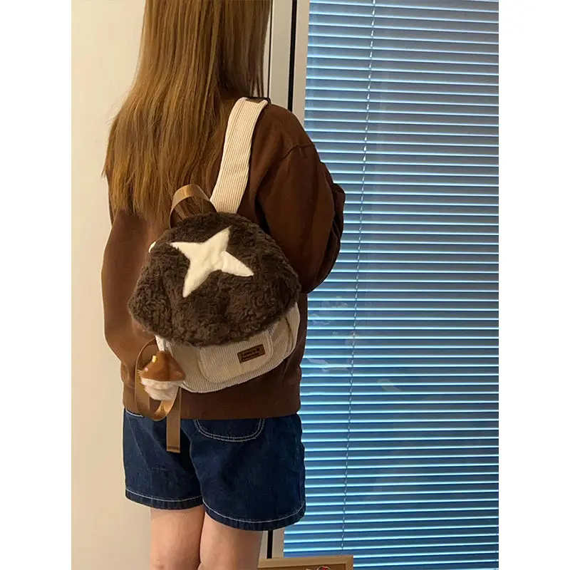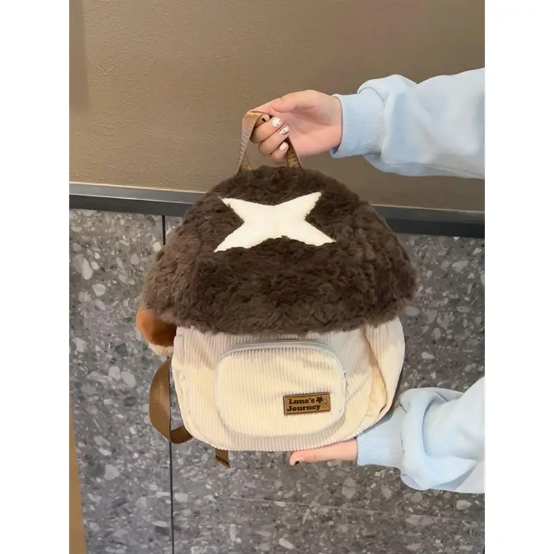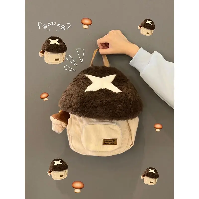 秋冬ぬいぐるみキノコ漫画人形バックパック女性の新 2024 毛皮のようなビッグブックバッグかわいいぬいぐるみバッグデュアルショルダーバッグ - TopDealBox