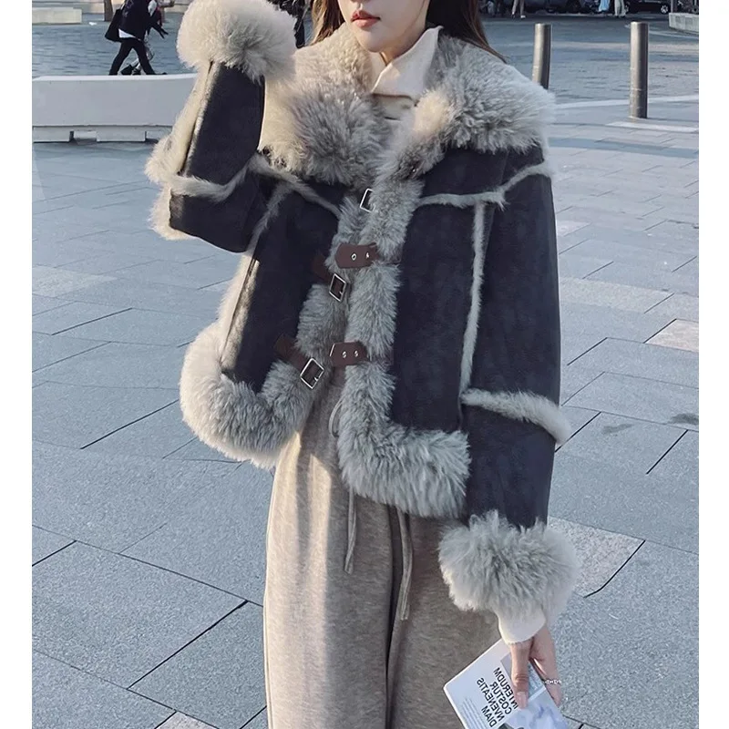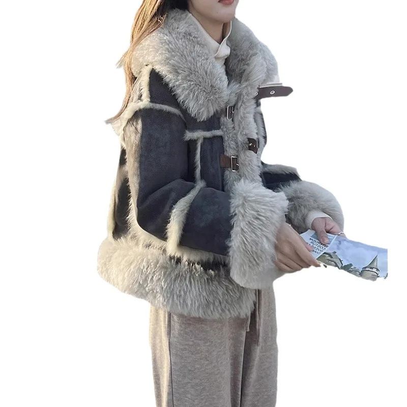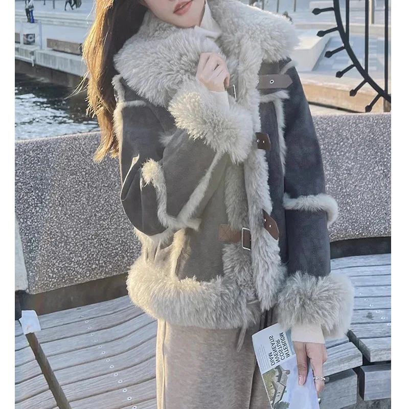 ラムファージャケット レディース 2024秋冬 バイクスタイル レザー一体型ファー スモールフレグランススタイル 高級コットンコート - TopDealBox