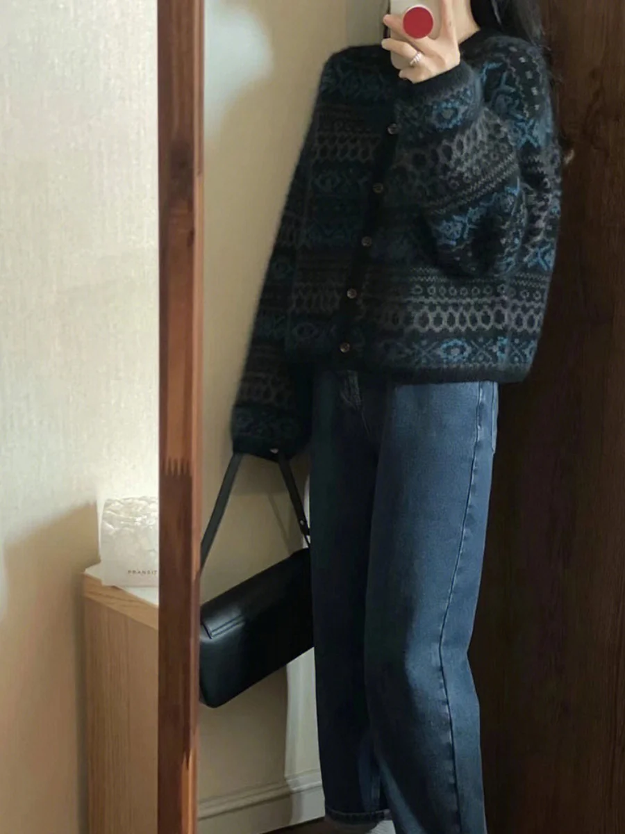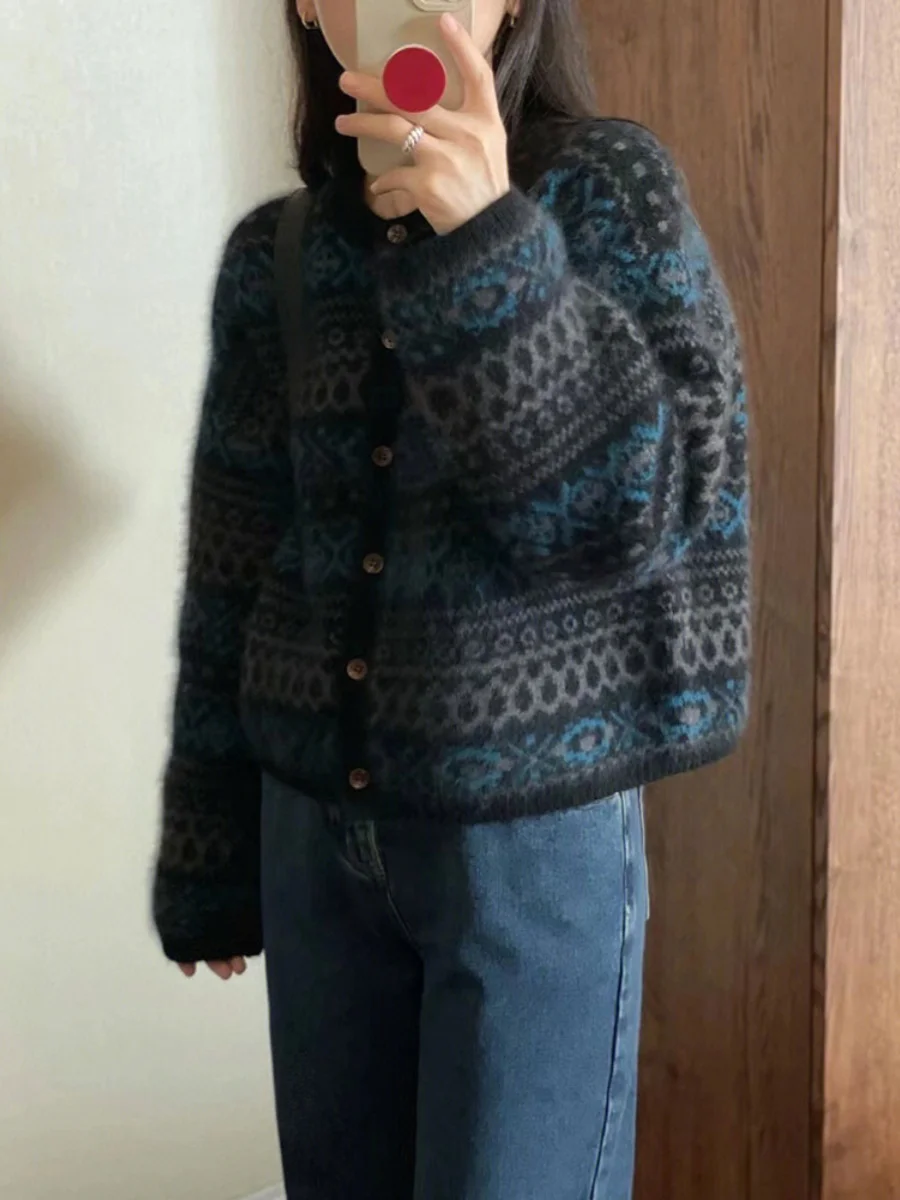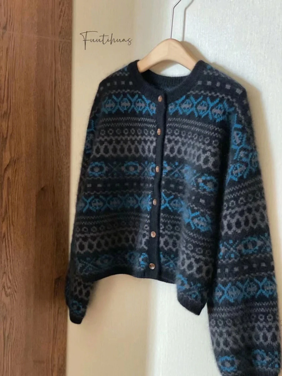 ユニークなソフトレトロニットセーター 2024 春の新スタイルの女性のファッショナブルな V ネック長袖肥厚カーディガン韓国語バージョン - TopDealBox