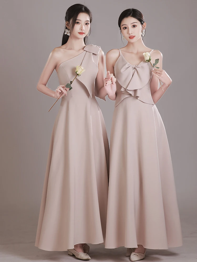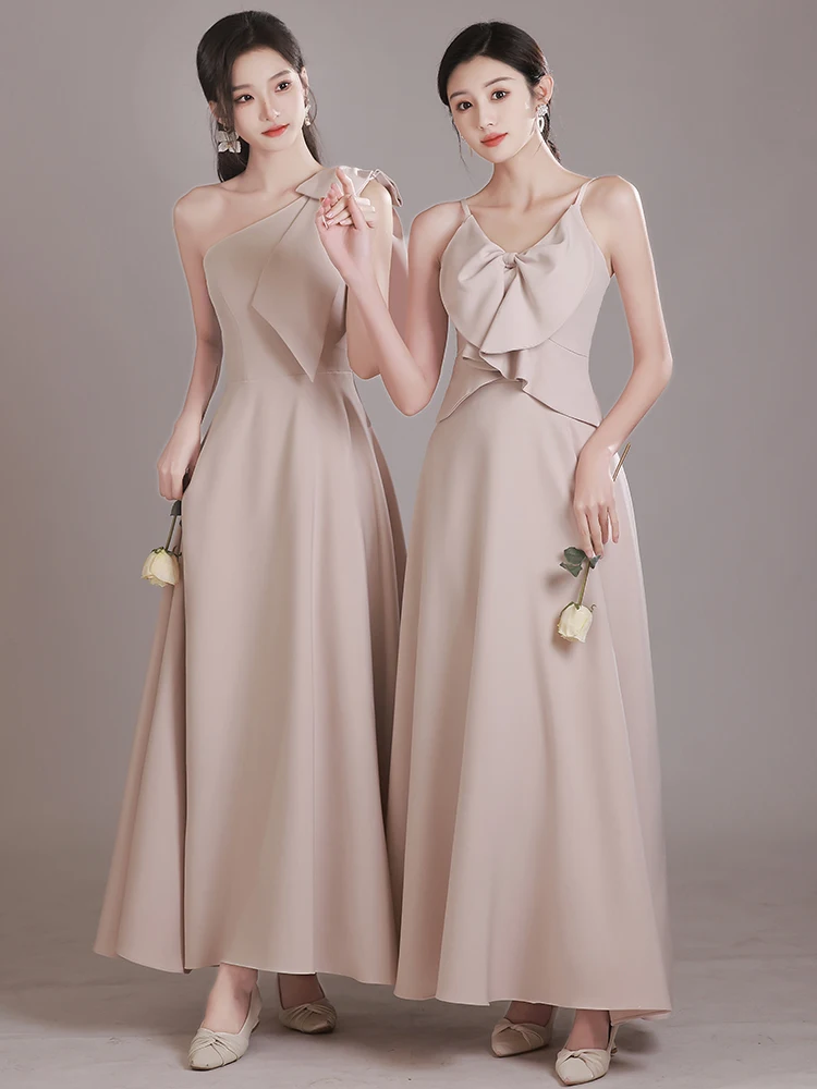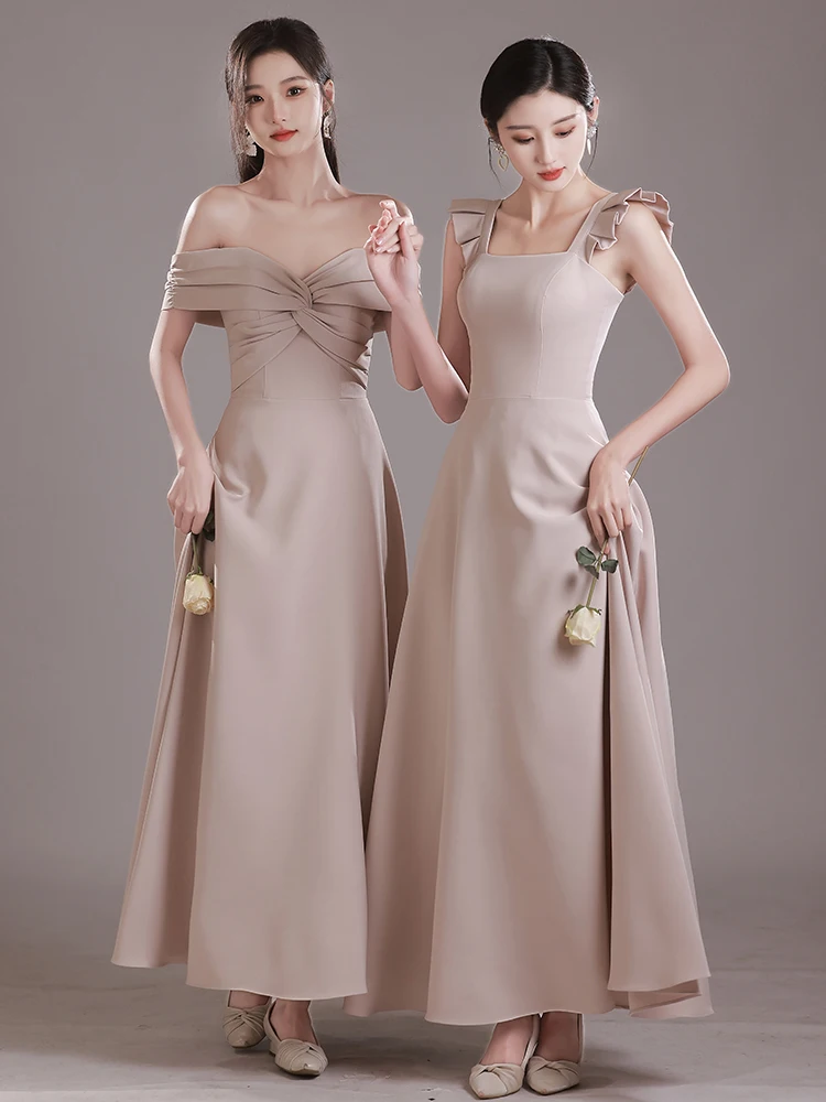 カーキメイドドレス 2025 新しい夏のサテン表面痩身姉妹グループイブニングドレス女性のミニドレスエレガントな薄型ショードレス - TopDealBox