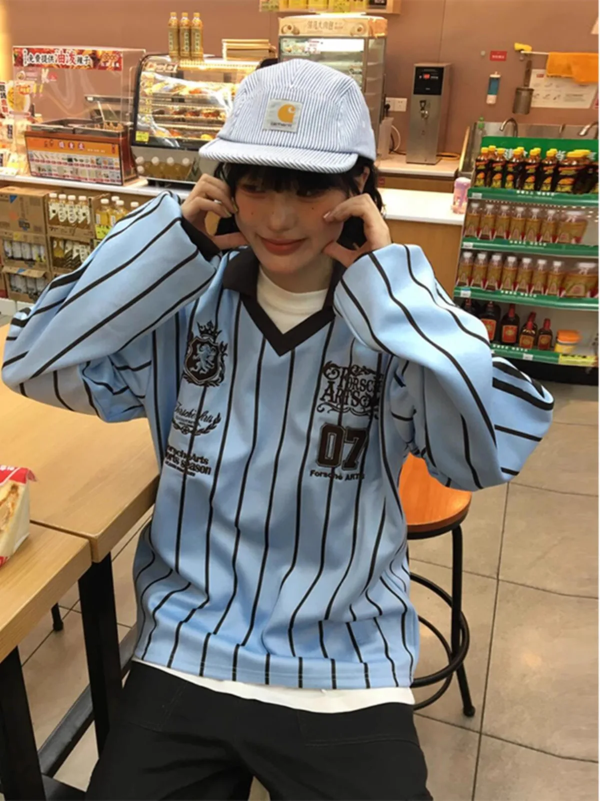 ♡Quick viewアメリカンレトロカラーブロックポロネックスウェットシャツレディースルーズVネック長袖スポーティトップ快適なコットンブレンドクルーネックスウェットシャツ1759 JPYHot★★★★★4.4