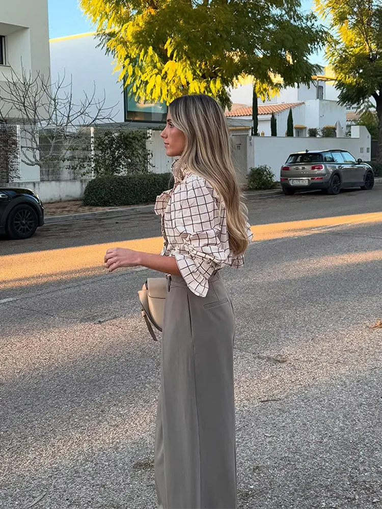 ♡Quick view女性のヴィンテージチェックシャツ,レースアップカラー,エレガントなシングルブレストボタン,長袖ポケットブラウス,春のストリートトップ,20221899 JPYHot★★★★★★5.0