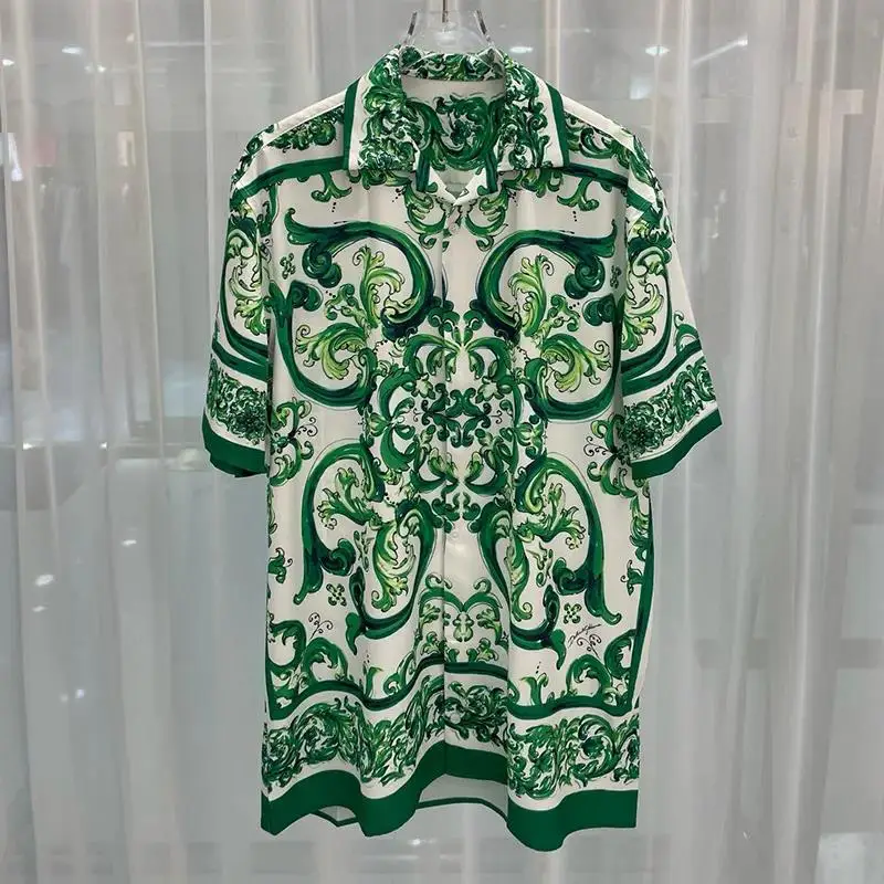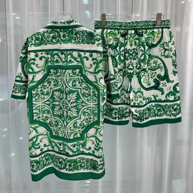 2025年夏 デジタルプリント カジュアル 半袖 メンズ シャツ ショーツ ハワイアンシャツ セットアップ 越境 ユース ファッション 男性モデル服 - TopDealBox