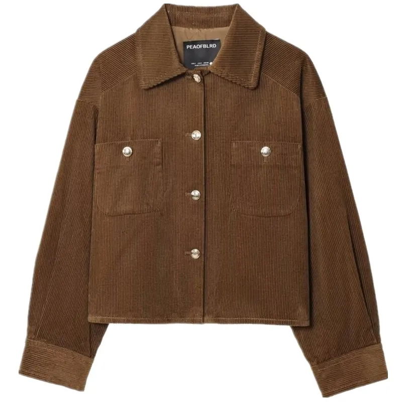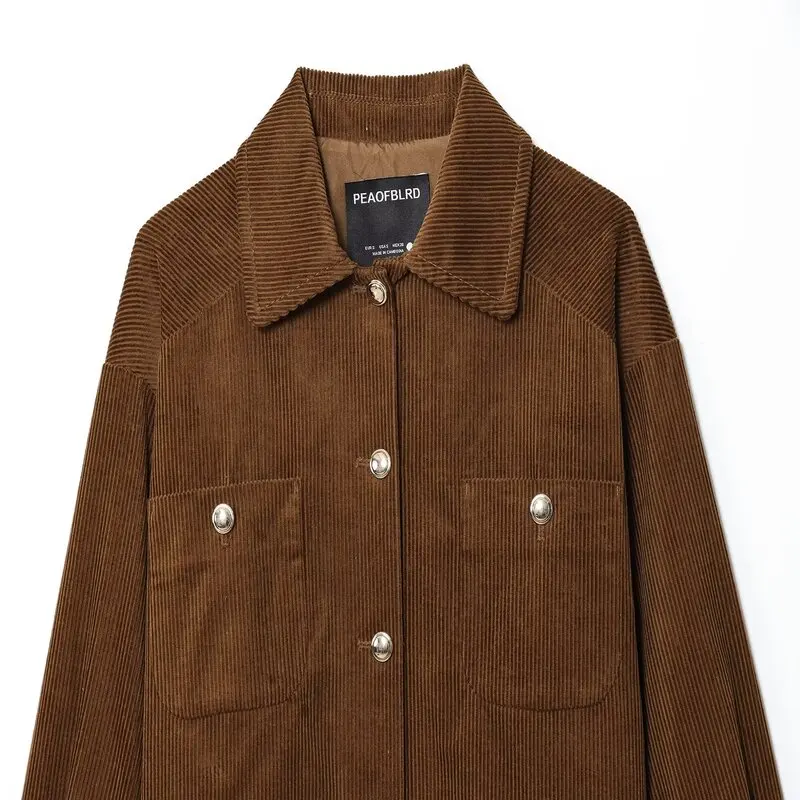 2025年秋 レディース コーデュロイ 長袖 ターンダウンカラー ポケットコート 大きめシルエット アウター 通勤スタイル 暖か機能付き - TopDealBox