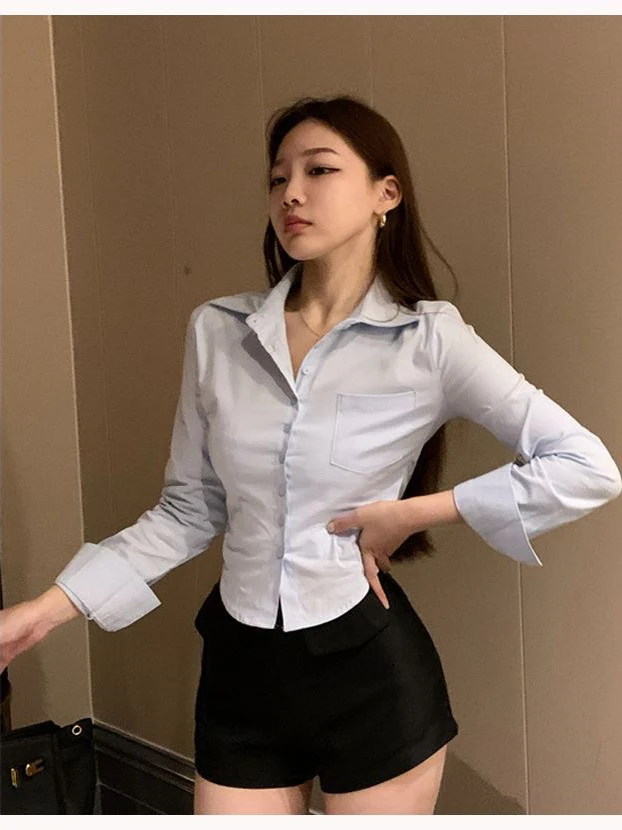 スリムフィット長袖白シャツ レディース ビジネスワークウェア ウエストシェイプ 細見え効果 ショート丈 通勤ファッション 2025年秋 - TopDealBox