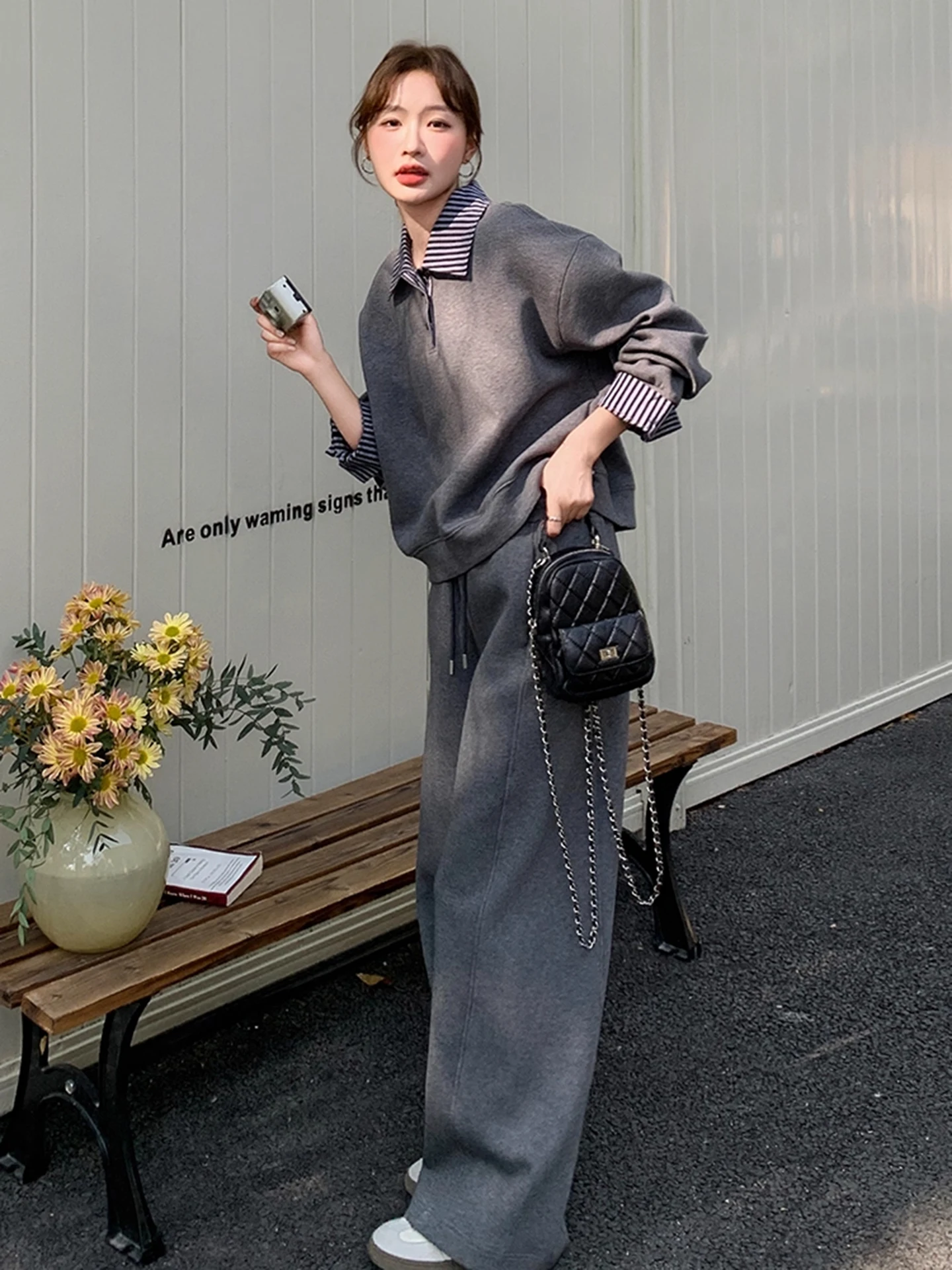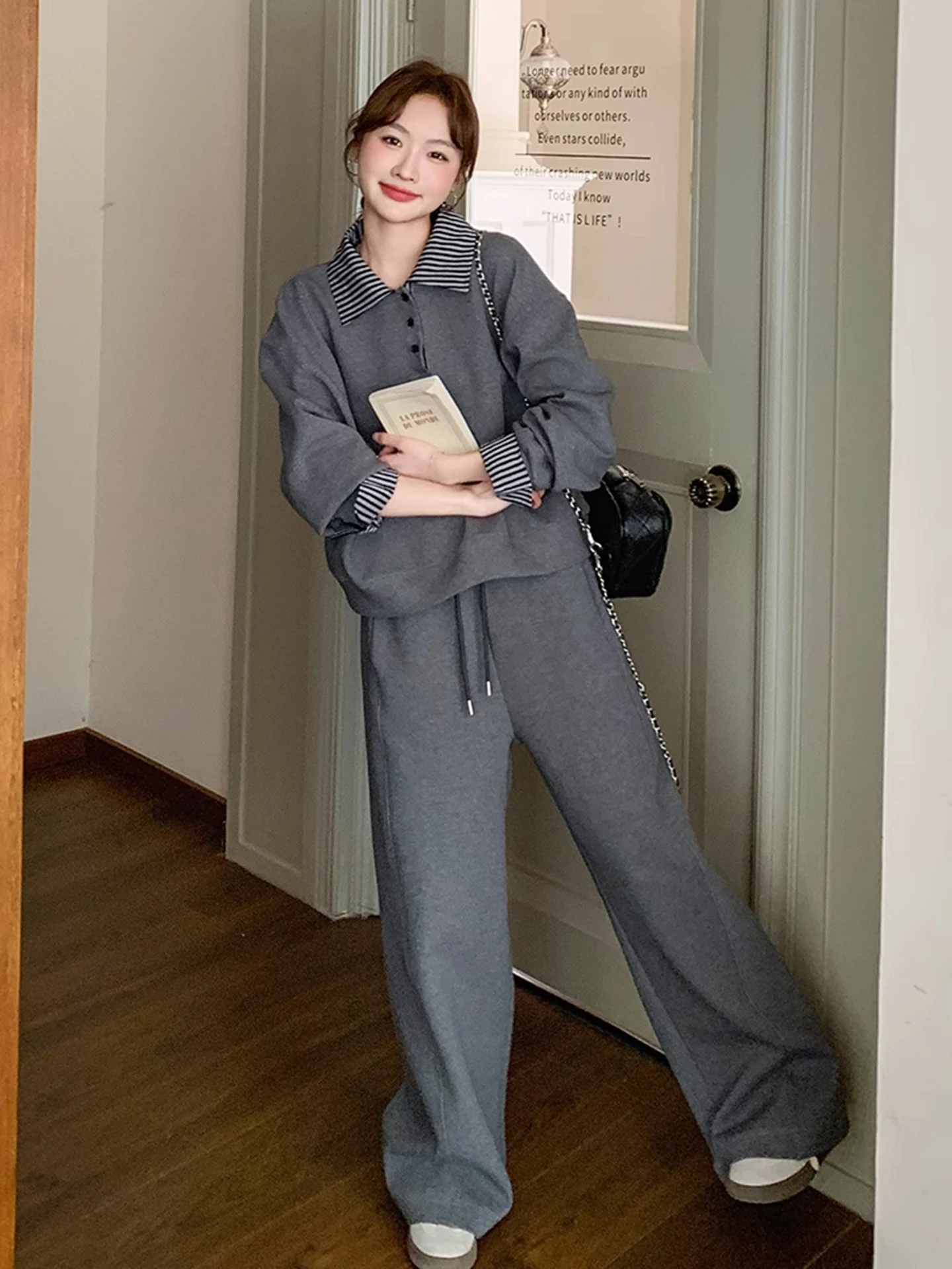 ♡Quick view女性用ツーピースセット,ラウンドネックトップス,ルーズパンツ,モノクロストリートウェア,カジュアルホリデースーツ,エレガントでファッショナブル,秋冬1139 JPYHot★★★★★★4.9