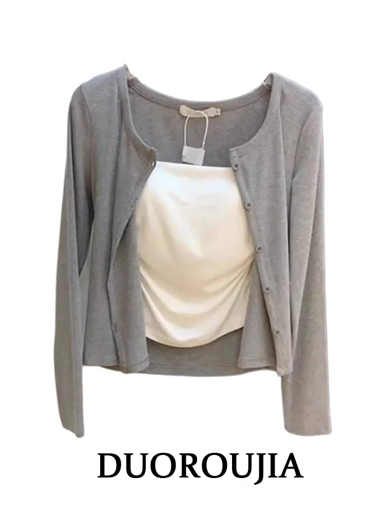 ♡Quick viewプラスサイズ レディース アメリカンスタイル 日焼け対策 オープンカーディガン 夏 ピュアデザイア ベストトップ 胸パッド付き ツーピースセット カジュアル ルーズフィット911 JPYHot★★★★★★4.9