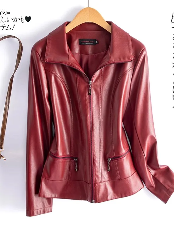 ♡Quick view女性のための本革のジャケット,シープスキンコート,ウインドブレーカー,クラシック,クラレット,大きなラペル,広い肩,超短,高級デザイナー,秋26555 JPYHot★★★★★★4.9