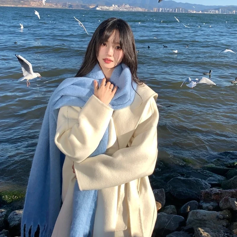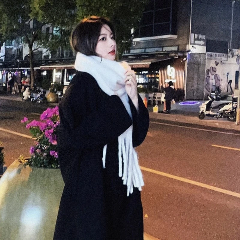 2025年新作 ホワイトカシミヤスカーフ レディース 秋冬 厚手 暖かい 韓国風 学生 ネックウォーマー タッセル付き 無地 長方形 - TopDealBox