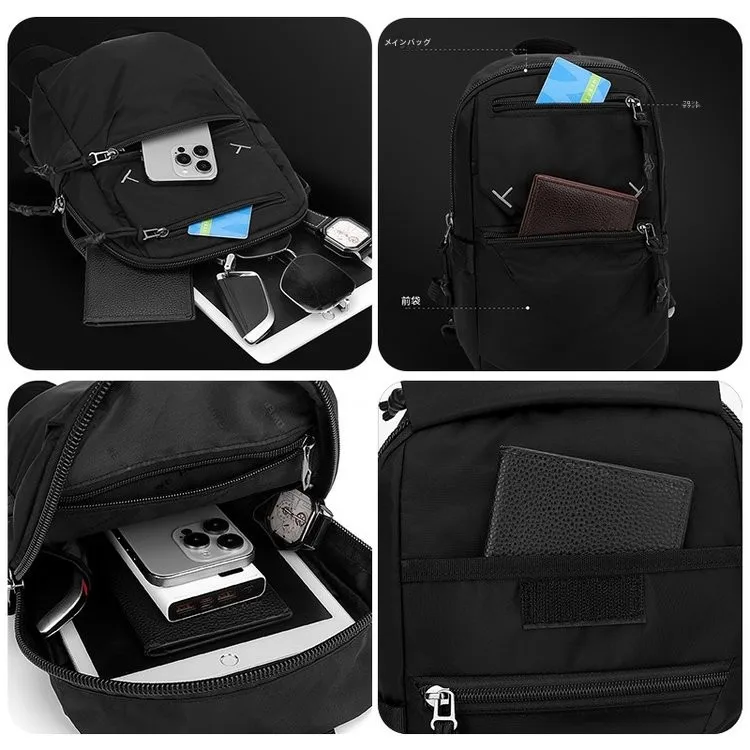 2025年新作 メンズ カジュアル 軽量 ミニバックパック 多機能 通勤 仕事用 チェストバッグ ナイロン素材 ジッパー開閉 ソフトスタイル - TopDealBox