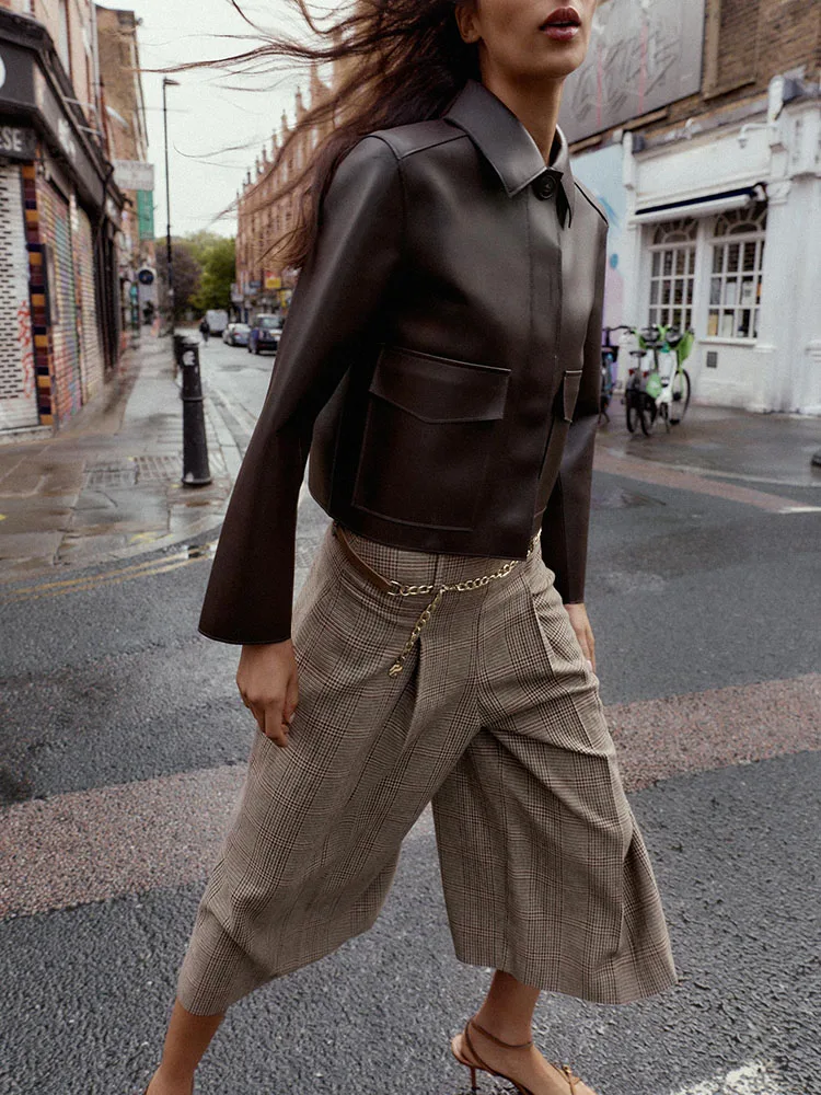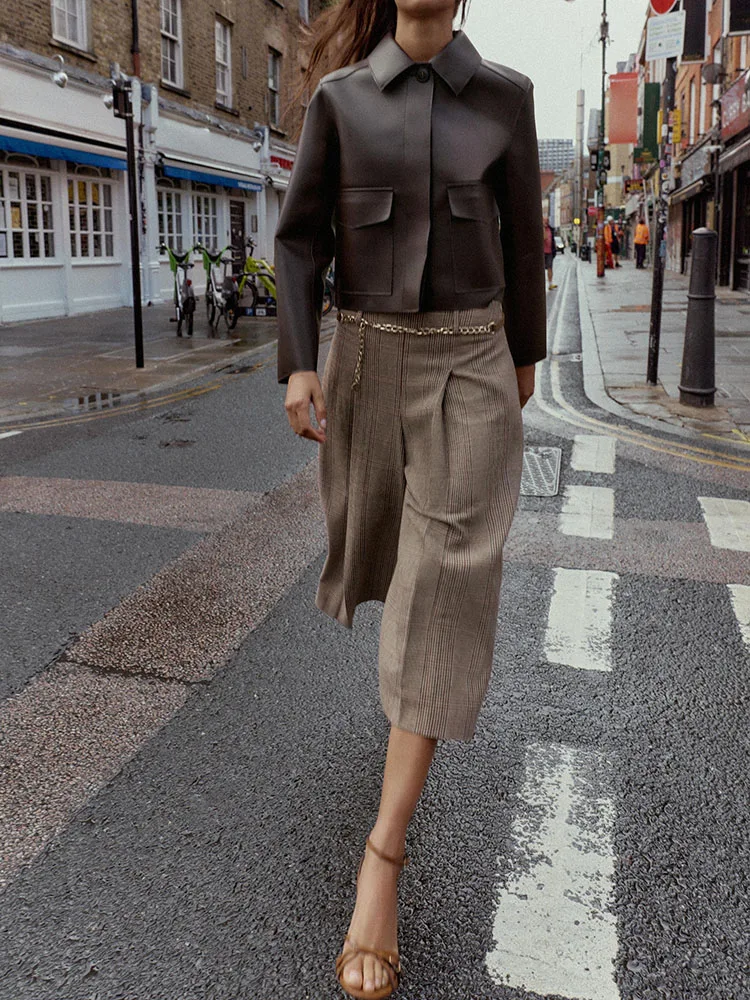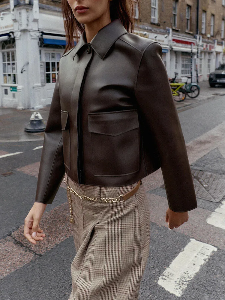 2025年秋新作 レディース おしゃれ ショート丈 レザー ジャケット ルーズフィット 襟付き アウター 通勤スタイル 長袖 ジッパー - TopDealBox