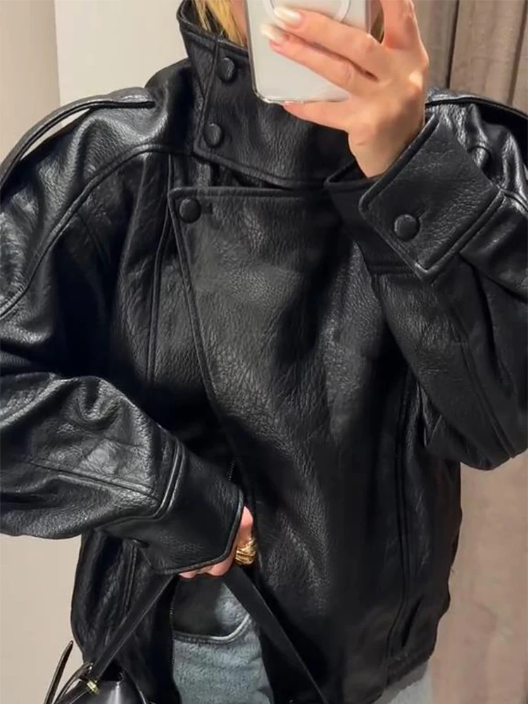 ♡Quick viewMUJER フェイクレザーの女性のジャケット黒オーバーサイズボンバージャケット女性のためのアウターウェア冬のオーバーコート女性のファッションジャケット女性3285 JPYHot★★★★★★4.6