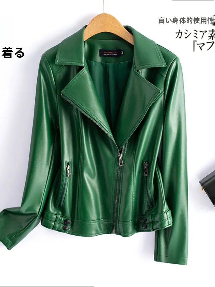 2025年春 レディース ショート丈 本革ジャケット スリムフィット スーツカラー ジッパー開閉 通勤スタイル シープスキンコート - TopDealBox