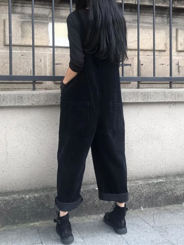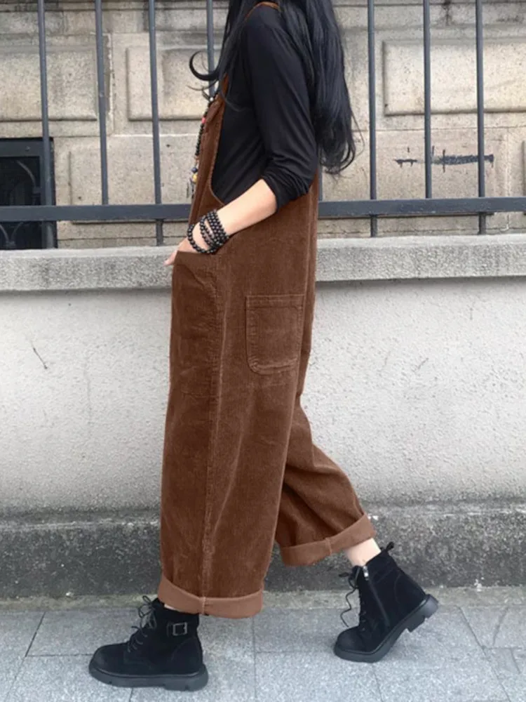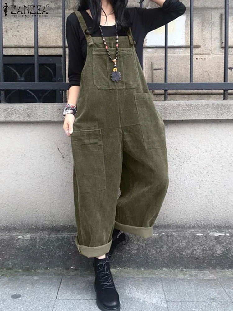 冬秋コーデュロイジャンプスーツ女性パンツ 2025 ZANZEA カジュアルサスペンダーファッションワイドレッグプレイスーツロンパースストリートウェアトラウザーズ - TopDealBox
