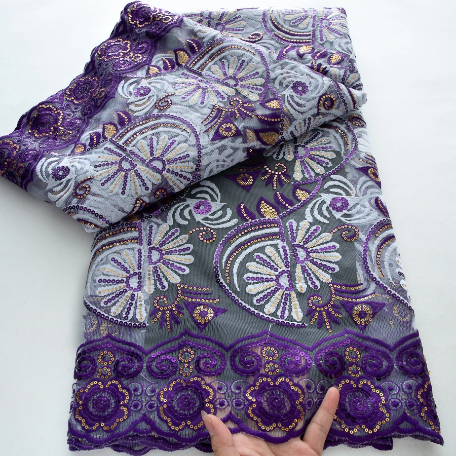 アフリカントゥールレース生地2025高品質ナイジェリア高級スパンコールメッシュレース生地5ヤードウェディングドレス女性用縫製A3731 - TopDealBox