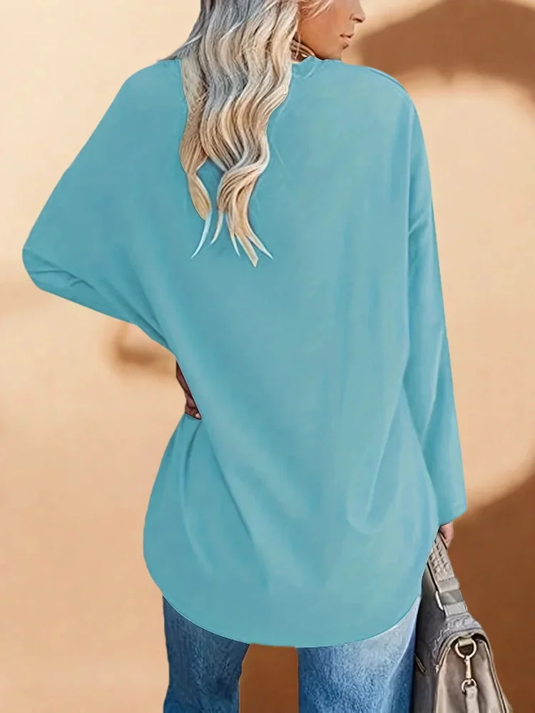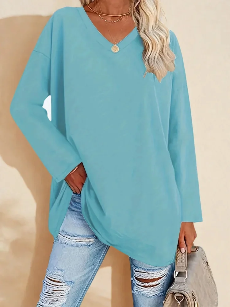 2025春夏の新女性のルーズ長袖Vネックコットントップウエスト締めヨーロッパファッション女性服輸出 - TopDealBox