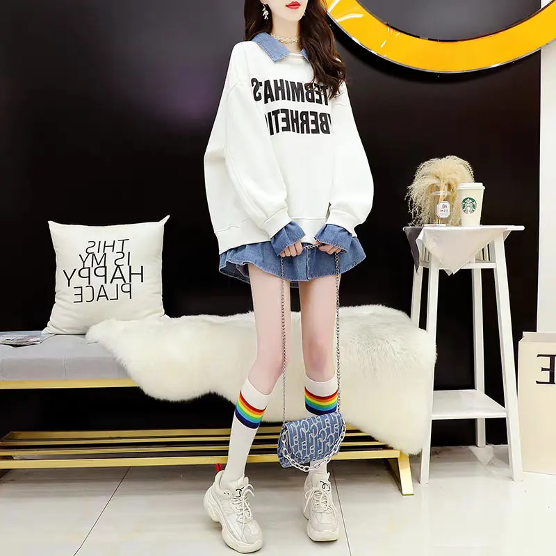 ♡Quick viewスリムフェイクツーピーストレーナーレディース春秋ゆったり大きいサイズデザインセンスデニムパッチワークトップコート綿ポリエステルブレンド長袖ポロ襟通勤スタイル1473 JPYHot★★★★★★4.9