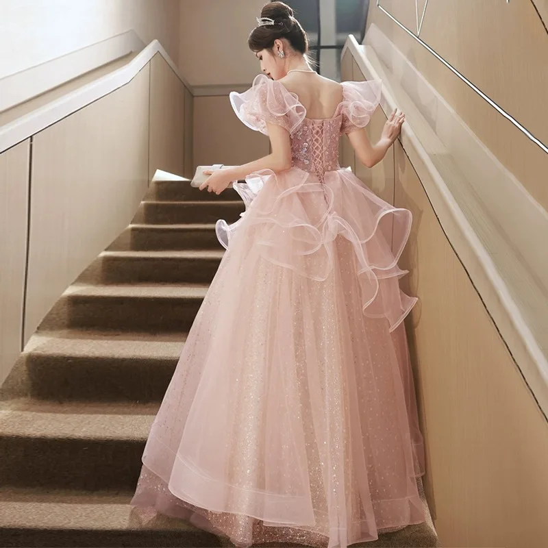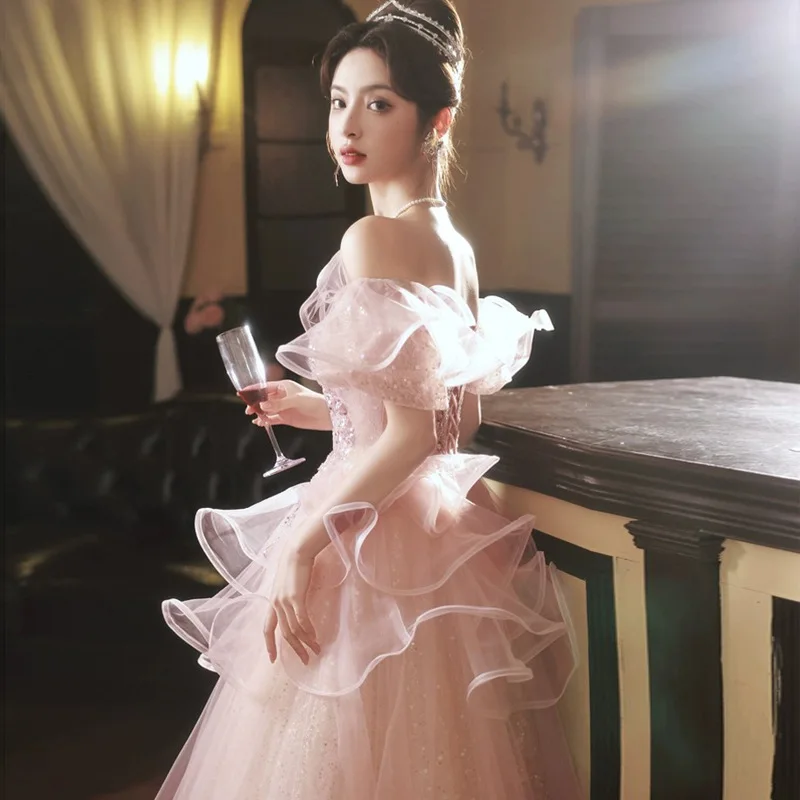 欧米風2026新作ドレス 宴会 女性らしい気質 大人式典 ピンク 年次総会 司会 宴会ドレス - TopDealBox