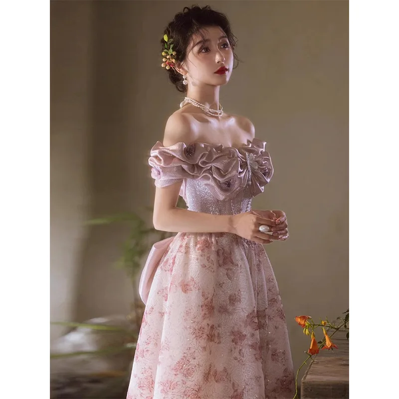 2026年新作 レディース 夏の宴会 婚約式ドレス おしゃれ フレンチレトロ 乾杯ドレス 高品質 ワンショルダードレス - TopDealBox