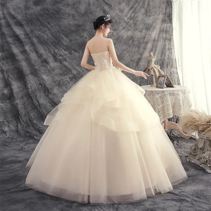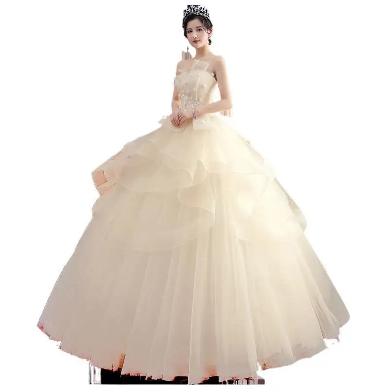 メインウェディングドレス 花嫁 2026新作 シャンパンカラー プラスサイズ 超フェアリー 小柄な体型でも見える ドリーミーな旅撮影ウェディングドレス - TopDealBox