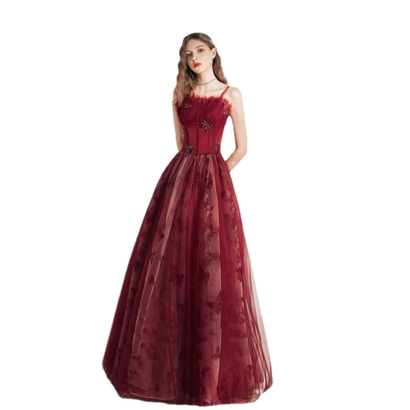 トーストドレス ブライダルドレス 2026 秋新作 ウェディングドレス レッド 宴会 洋風 婚約 バックドア ロングドレス シンプル 女性用 - TopDealBox
