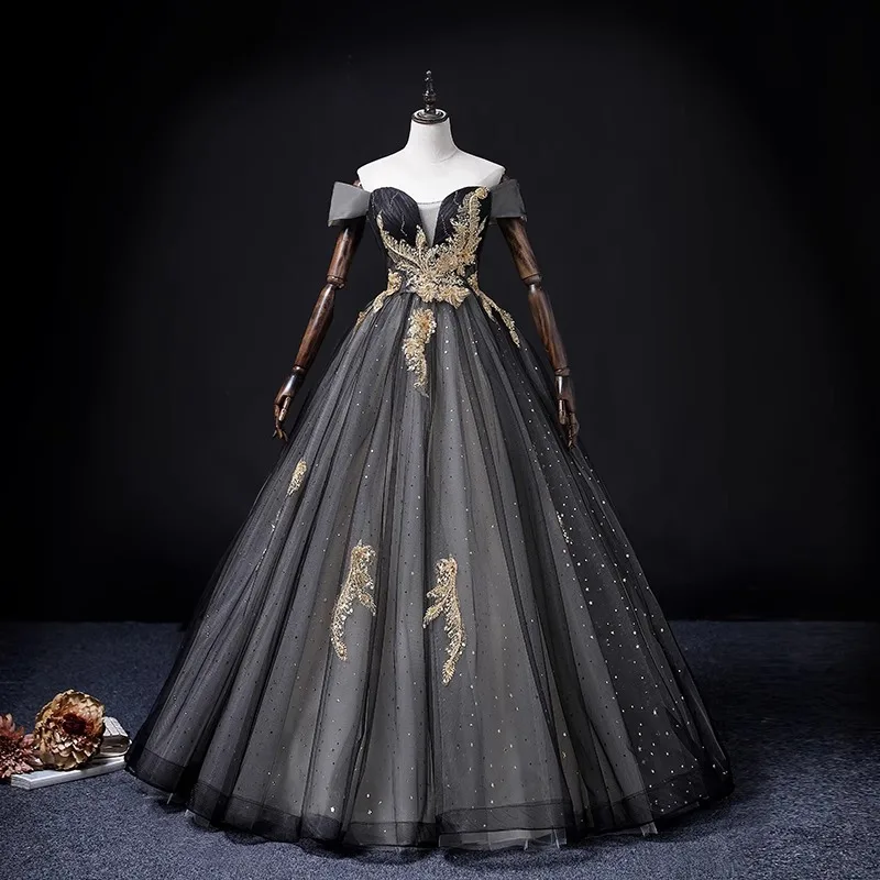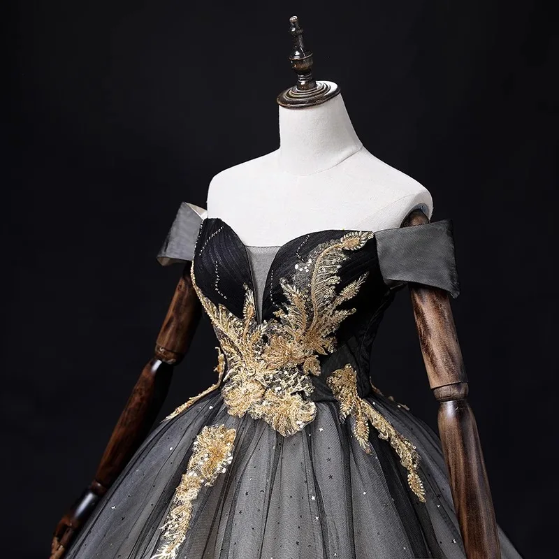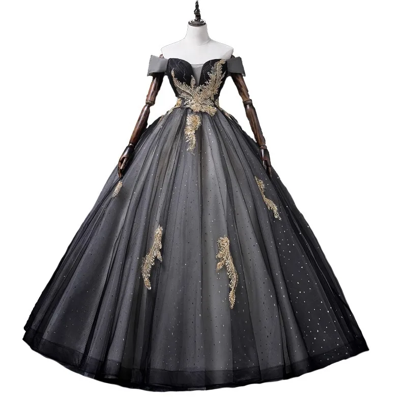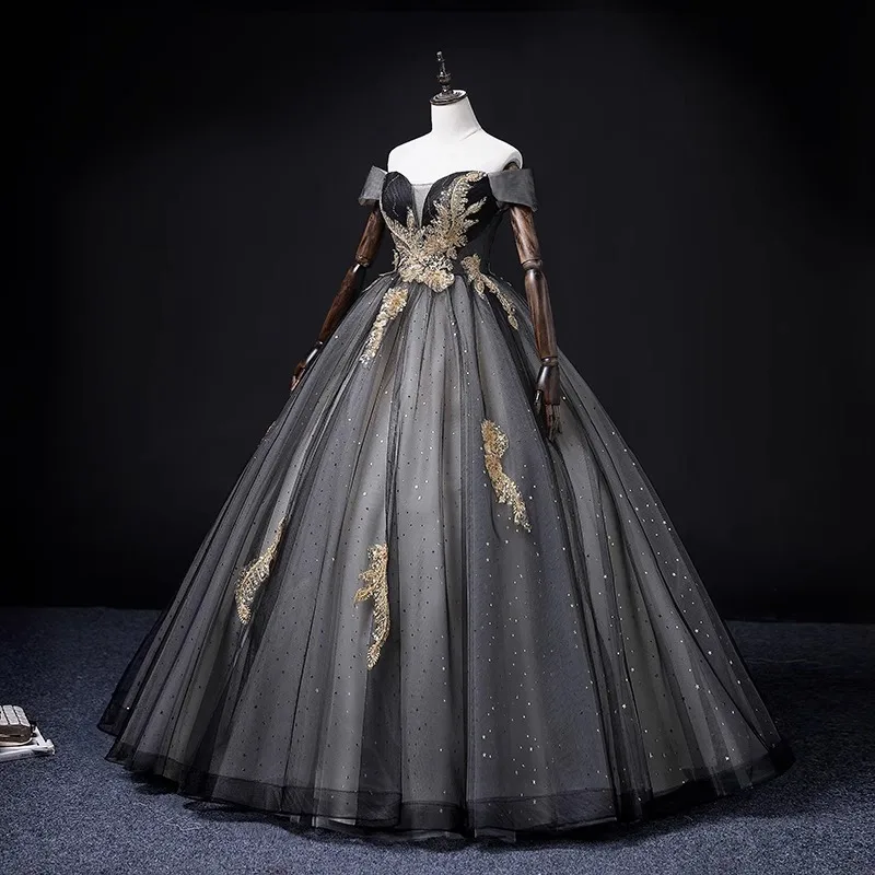 黒色のガーゼ素材のソロ演奏用2026年新作イブニングドレス、気品のあるボーカルアート試験用ドレス、スリムなワンショルダードレス - TopDealBox