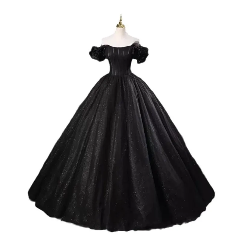 2026年新作 レディース ワンショルダー エレガント 宴会 イブニングドレス ファッション ハイエンド ロングスタイル アート試験 独奏演奏 パフスカート - TopDealBox