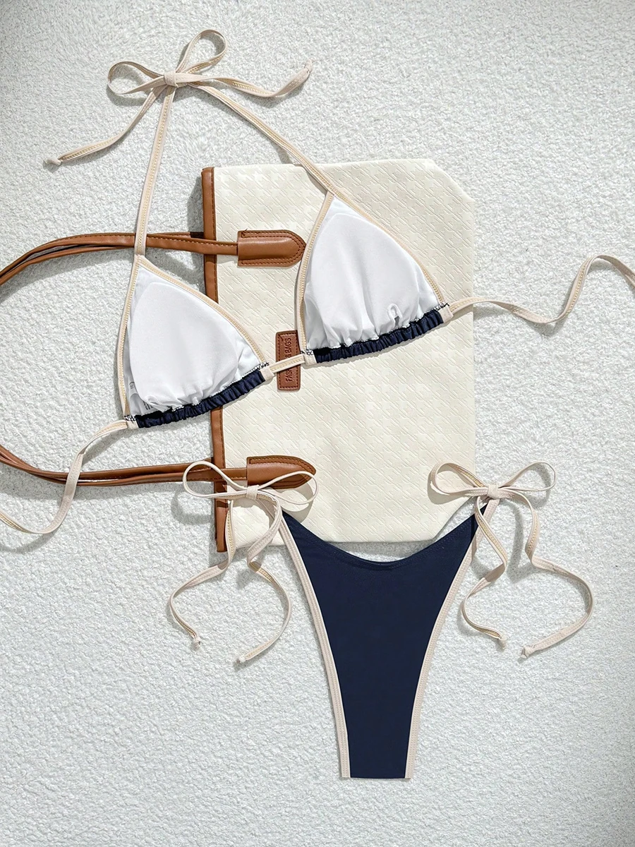 セクシーなコントラストカラーが際立つマイクロビキニ 2026 レディース水着 女性用水着 ミニソングビキニセット ツーピース水着 - TopDealBox