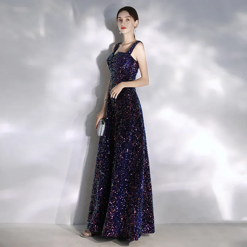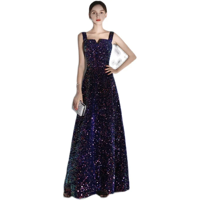 2026年新作 グリッターストラップ ホストモデル ファッションショー 年次総会 大人 エレガント ジッパー イブニングドレス - TopDealBox