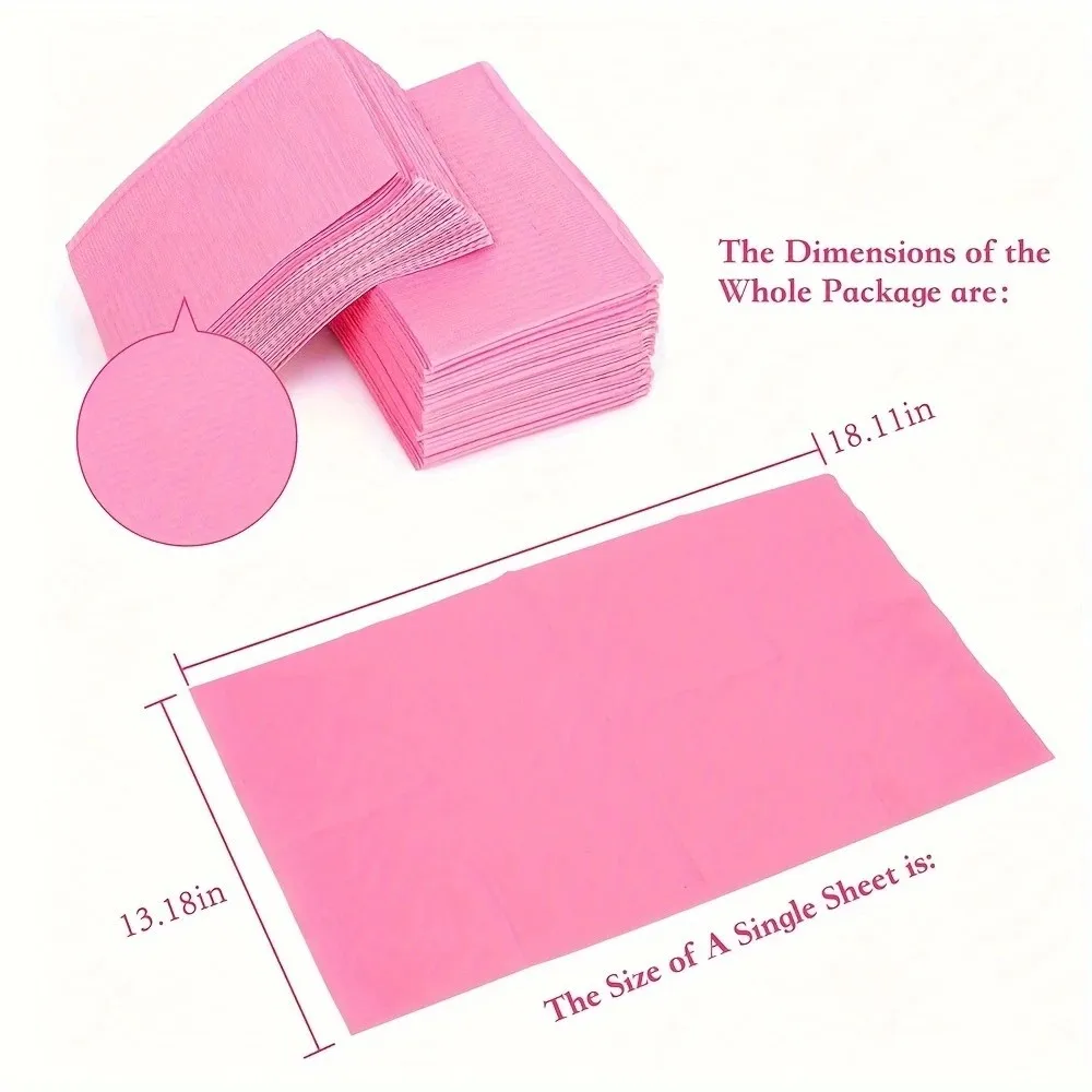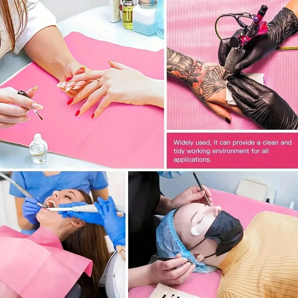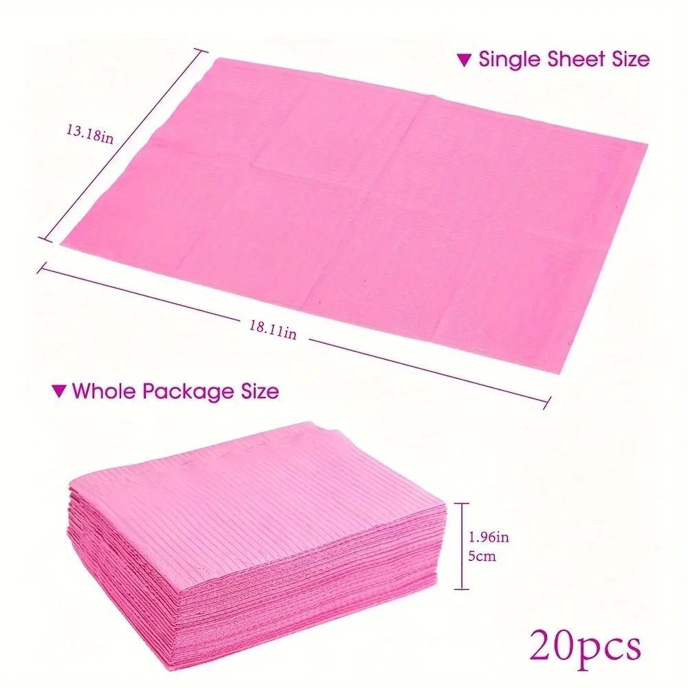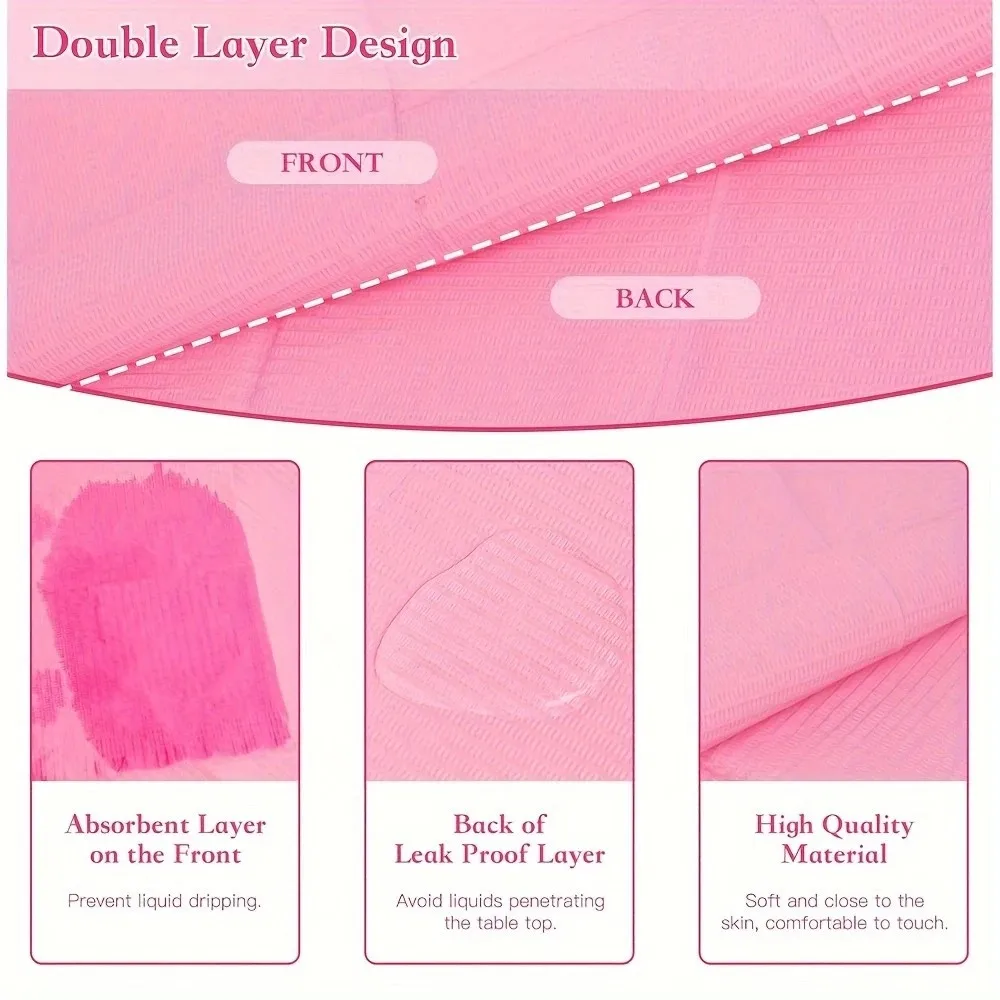 ピンクの使い捨てネイルアートテーブルタオル20枚パック、3層防水タトゥーよだれかけ、無香料のペーパートレイカバー、タトゥー用クリーンパッド - TopDealBox