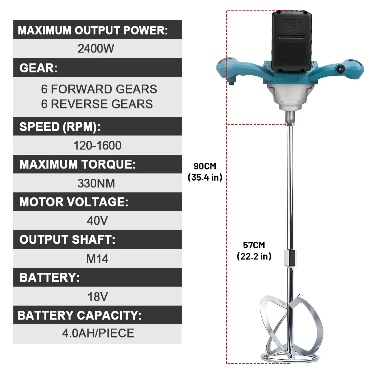ギサム 2400W コードレスコンクリートミキサー マシン パドルミキサー 6段階変速 撹拌機 電動ミキサー 撹拌ツール マキタ18Vバッテリーピン対応 - TopDealBox