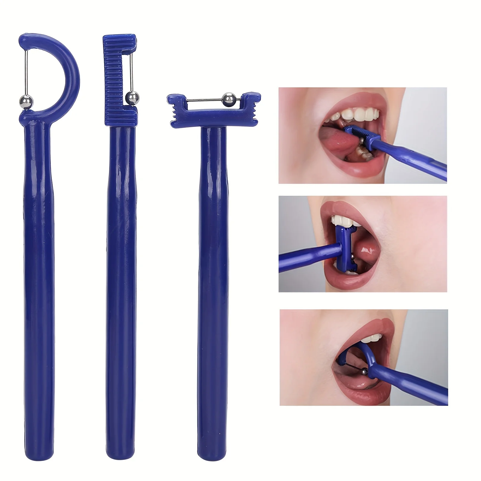 舌の筋肉トレーニングセット,舌の筋肉トレーナー,青い舌の先端を備えたエクササイズツール,ラテラライゼーション,オーラルリフティング,3個 - TopDealBox